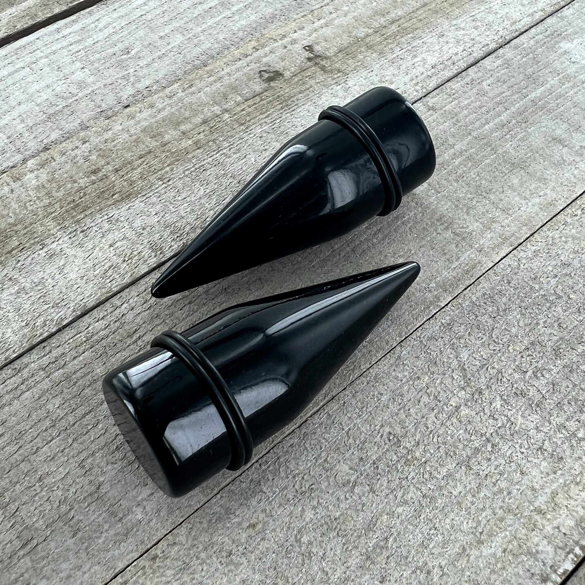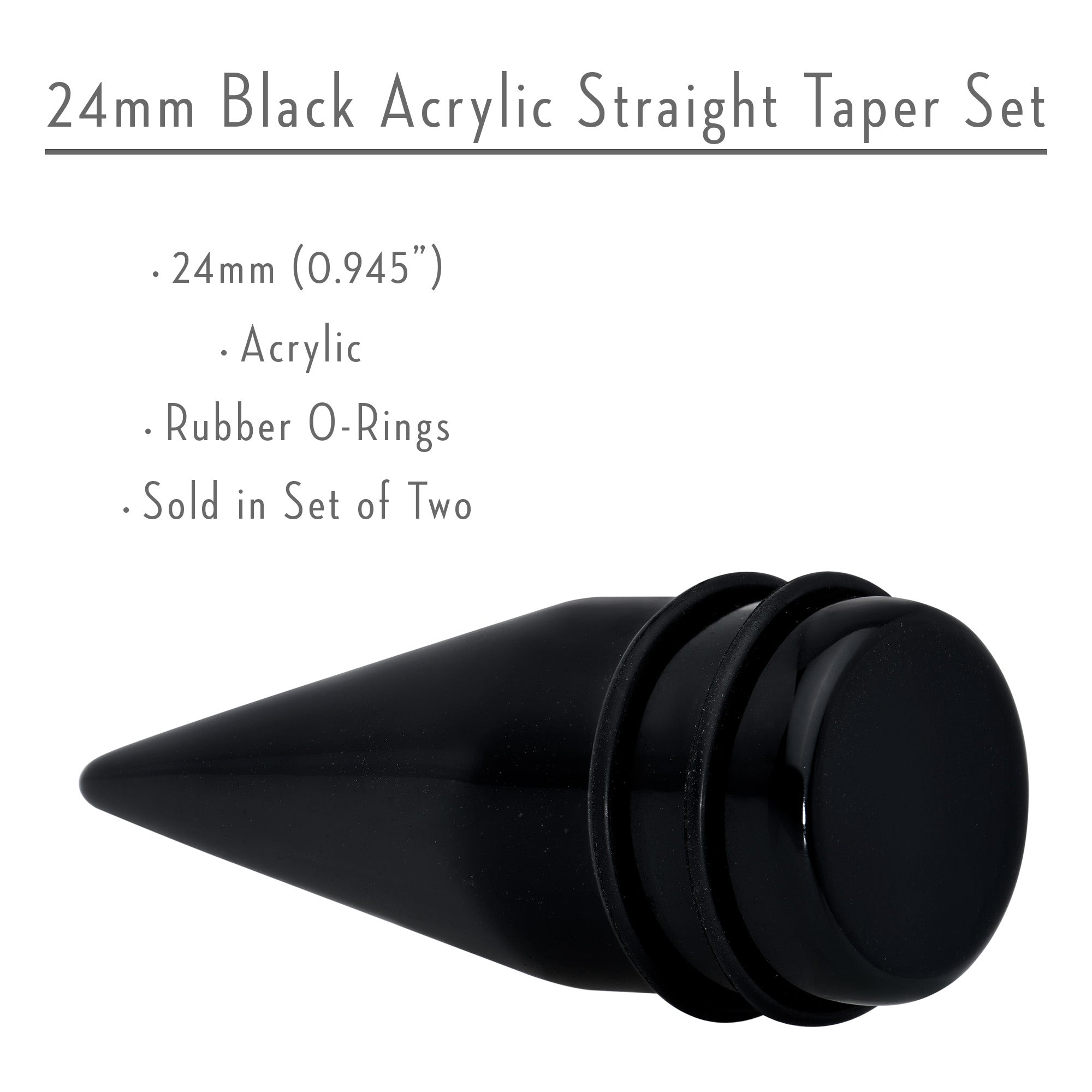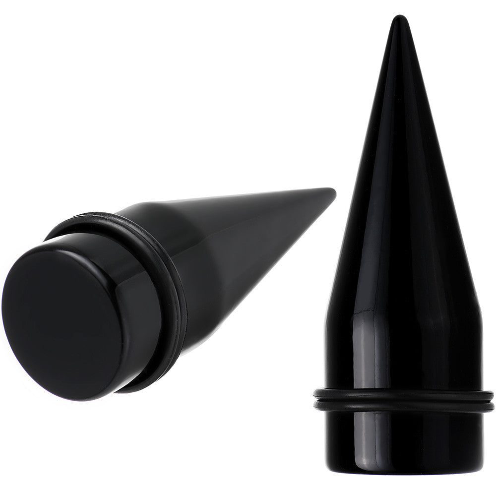 Hypoallergenic jewelry for sensitive skin.When you are ready to go from the advanced stages of ear expansion to increased, extreme sizes this set of tapers is a great choice for you. Made from lightweight black acrylic, these .94" ear gauges are tapered for safe, progressive sizing and come with rubber o-rings for secure, comfortable wear. These ear expanders are sold as a set of two and are ready to be used by you.