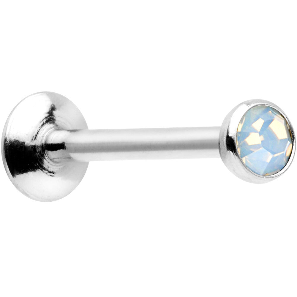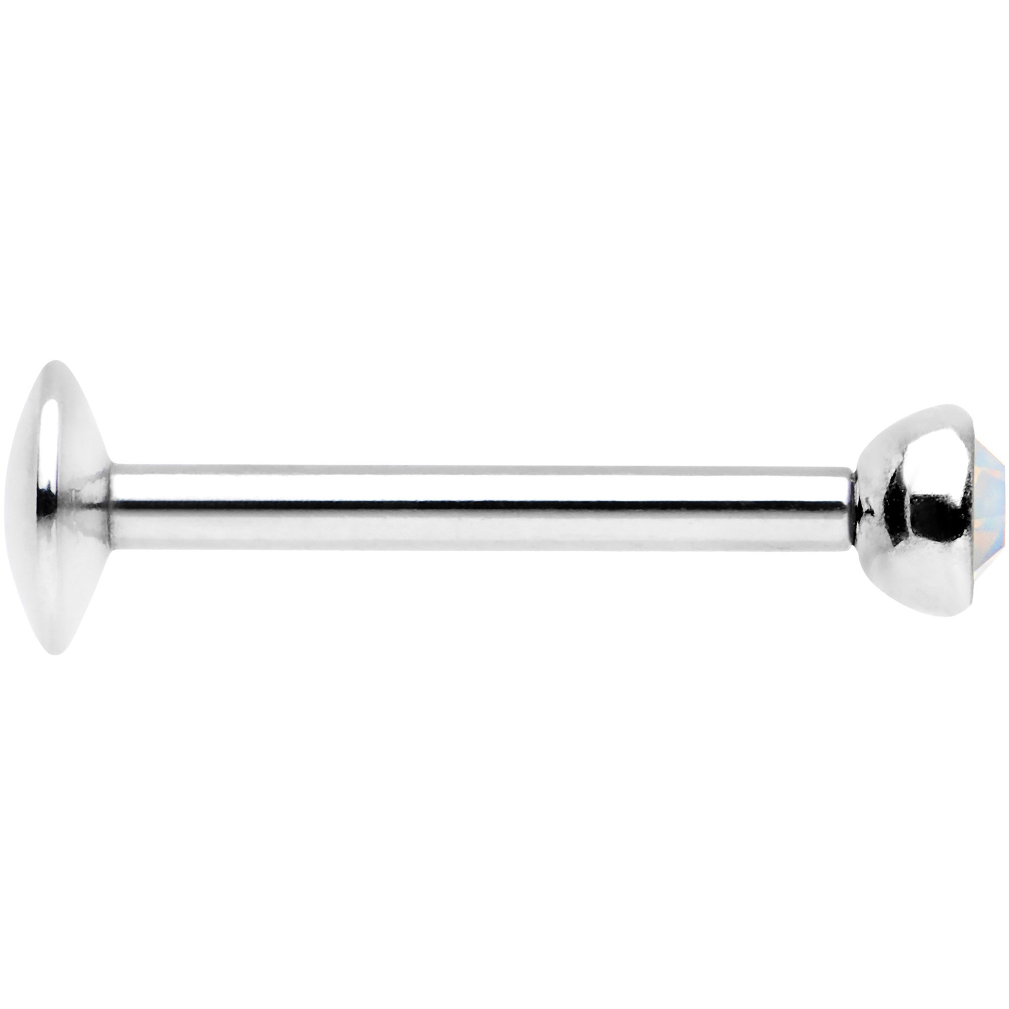 Hypoallergenic jewelry for sensitive skinUpgrade your piercing with something a little more eye-catching with this 16 gauge labret stud. The versatile body jewelry features a straight internally threaded 316L surgical grade stainless steel barbell with a length of 3/8" and is highlighted by a 3mm flat top opalite stone press fit in its setting for added security to keep the glitz and glamour going strong.