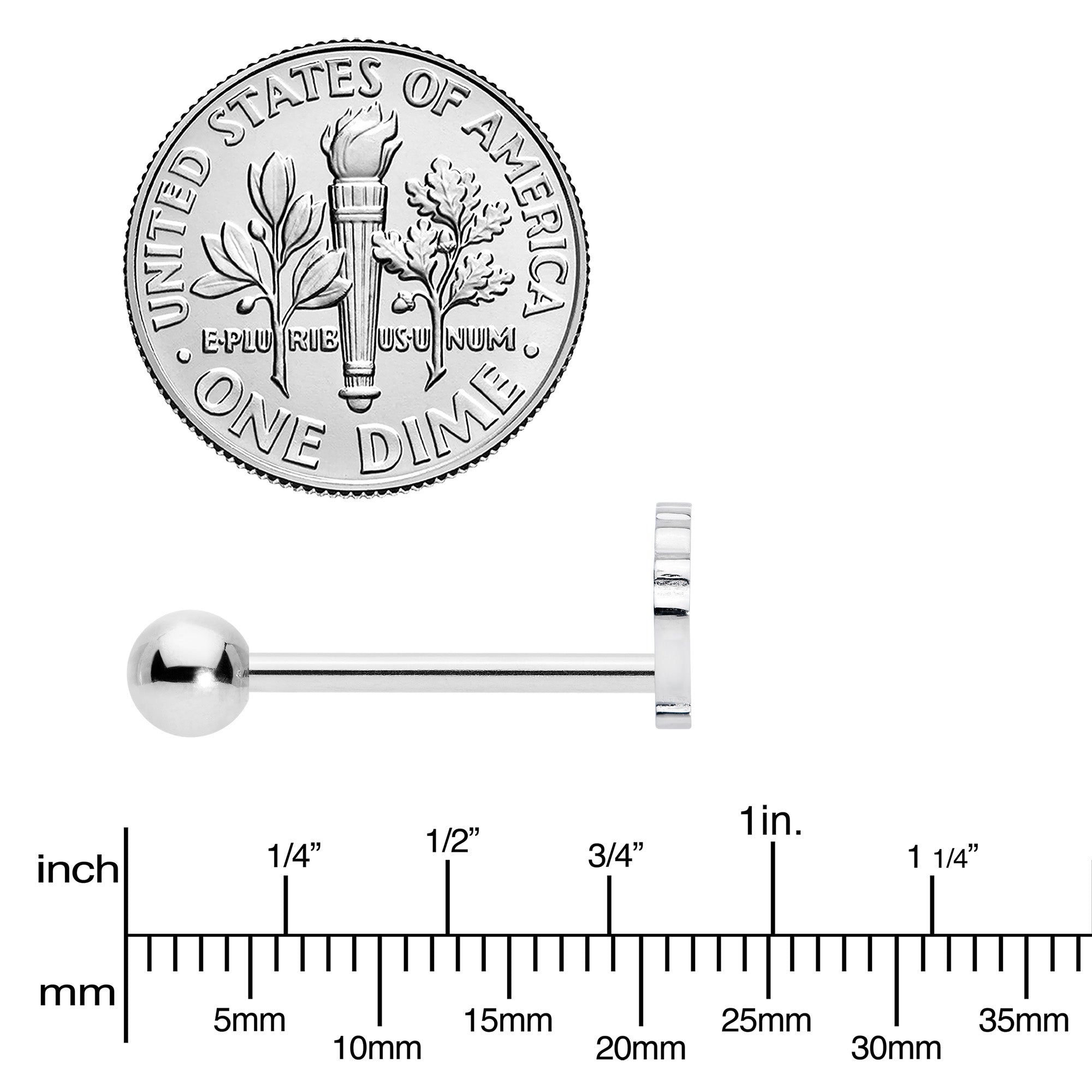 You can see sea shells no matter where you are with this 14 gauge tongue jewelry. It is made with a 5/8 inch 316L surgical grade stainless steel straight barbell with a 5mm bottom ball end. The top end features a sea shell charm, with openwork detailing for an airy feel. You will be feeling like a beach beauty everywhere you go with this nautical scallop shell tongue piercing ring.