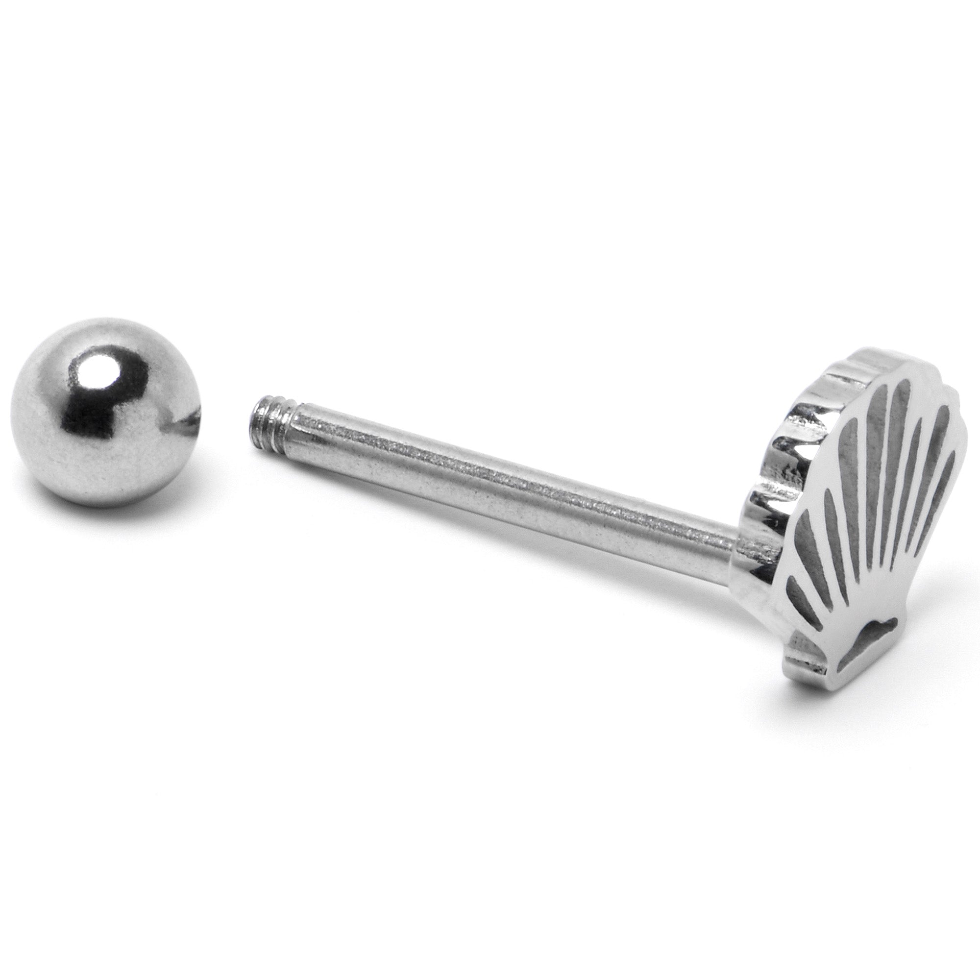 316L Surgical Steel Scalloped Sea Shell Barbell Tongue Ring