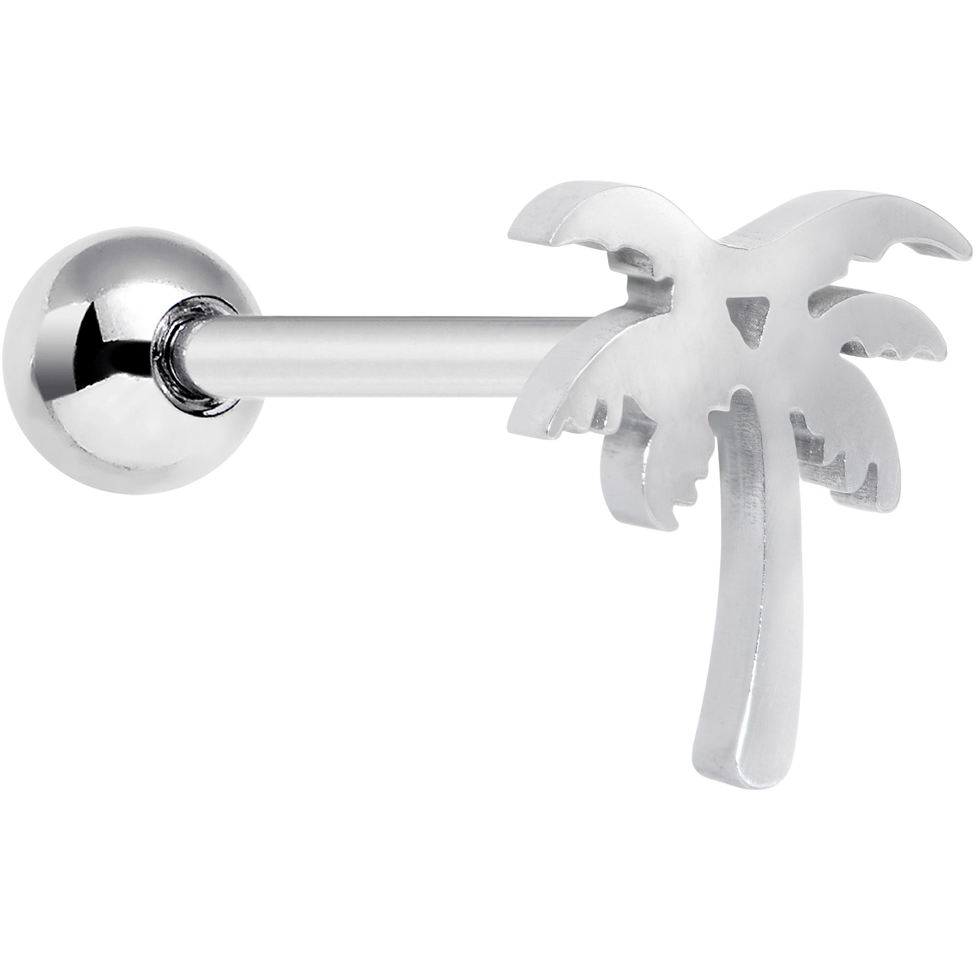 316L Surgical Steel Tropically Trendy Palm Tree Barbell Tongue Ring
