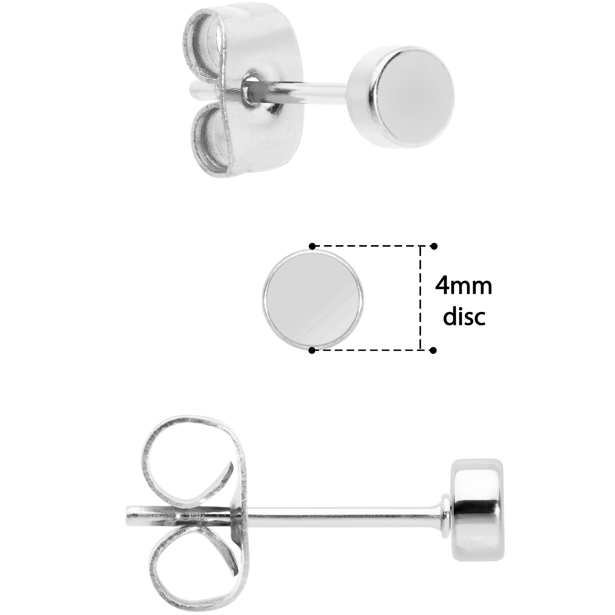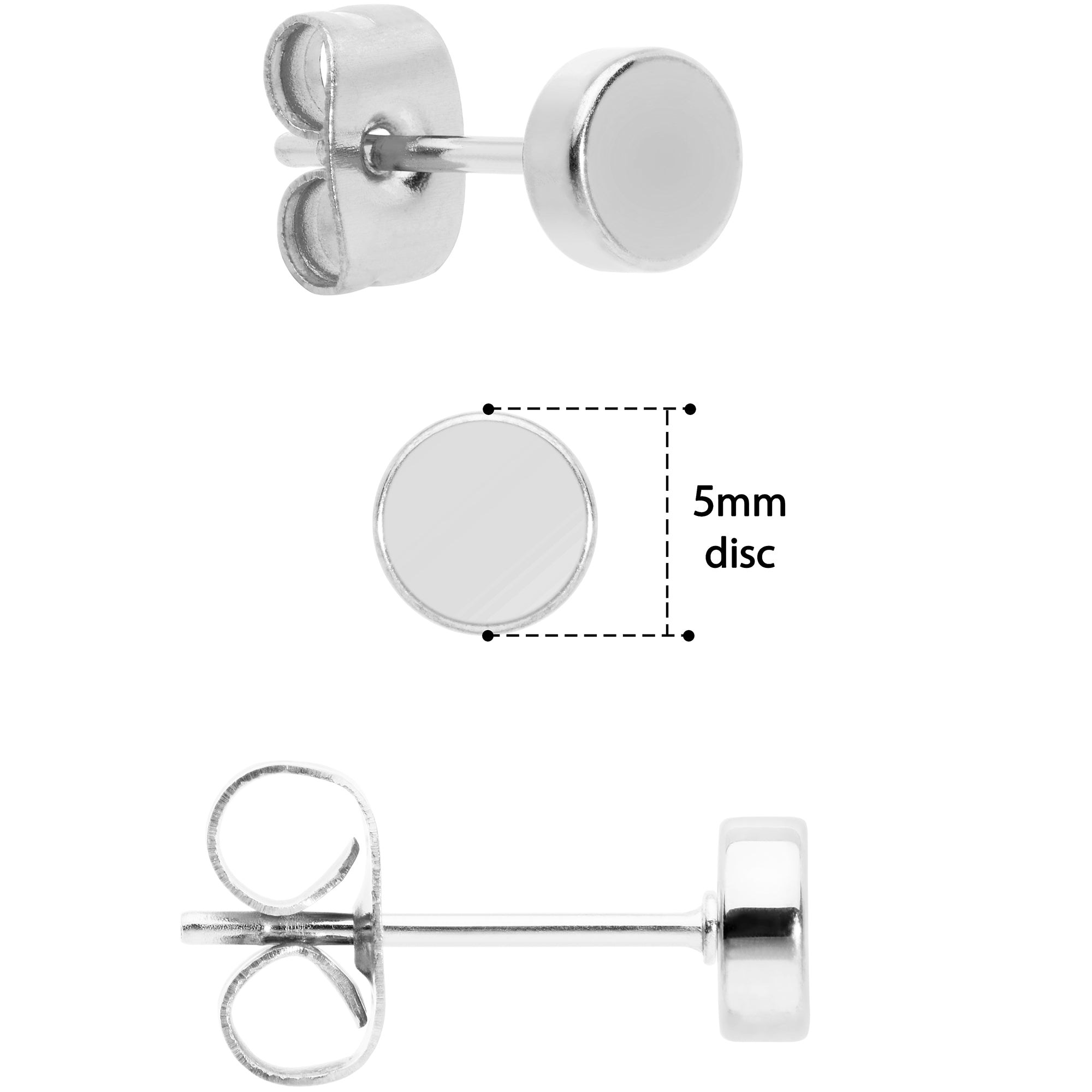 3mm 4mm 5mm Circle 316L Stainless Steel Stud Earrings 3 Pack