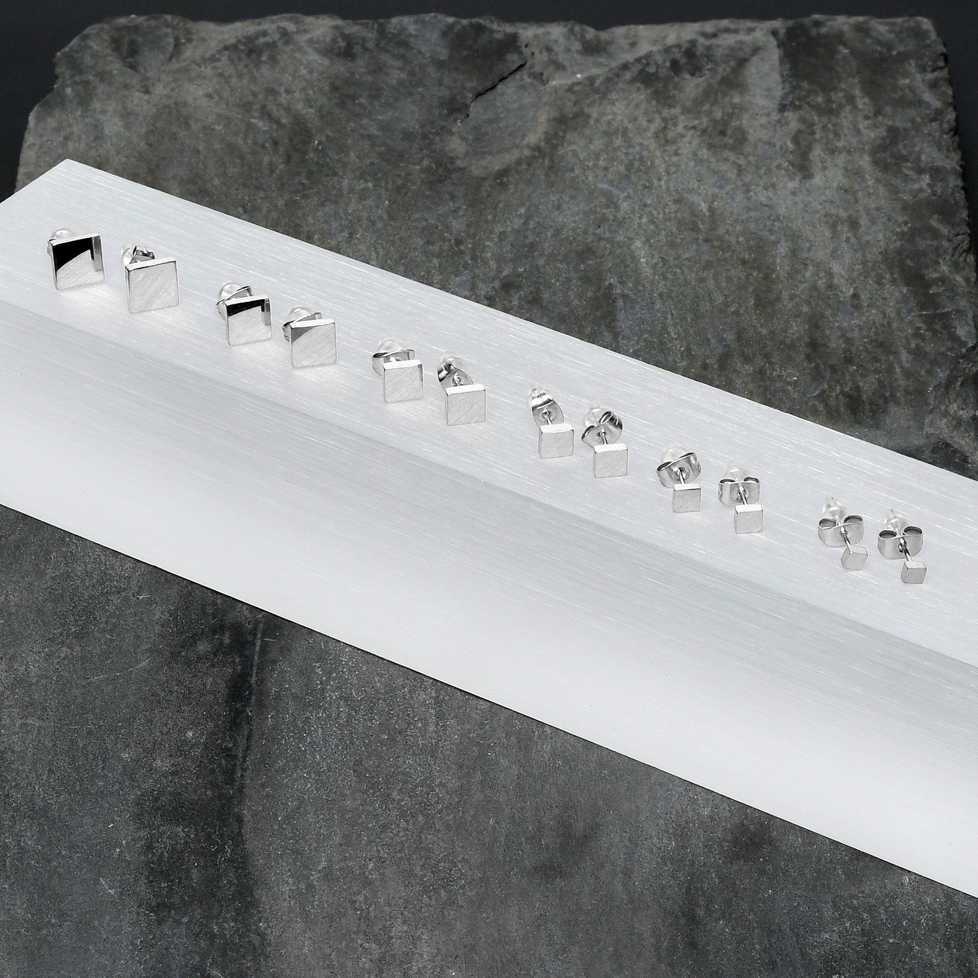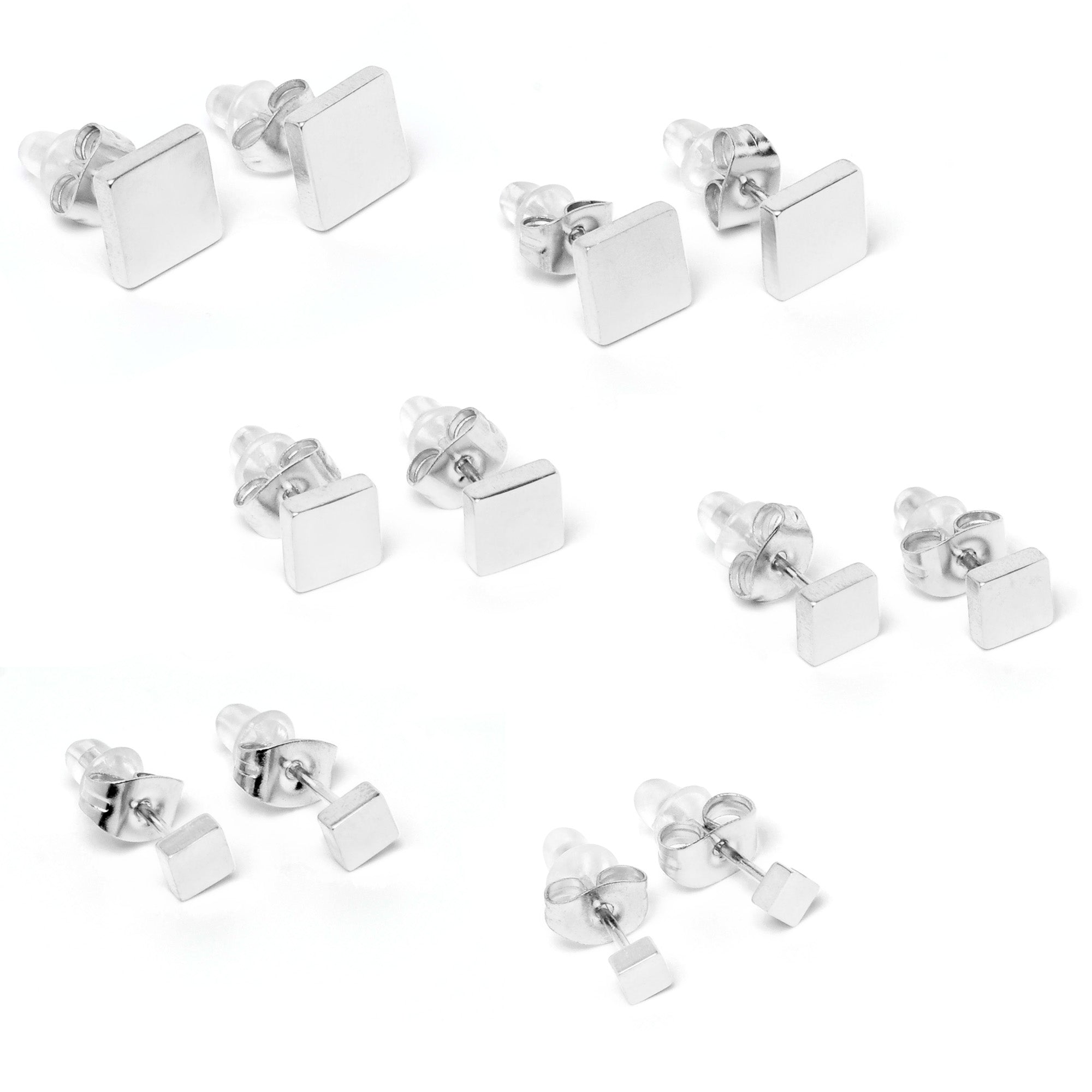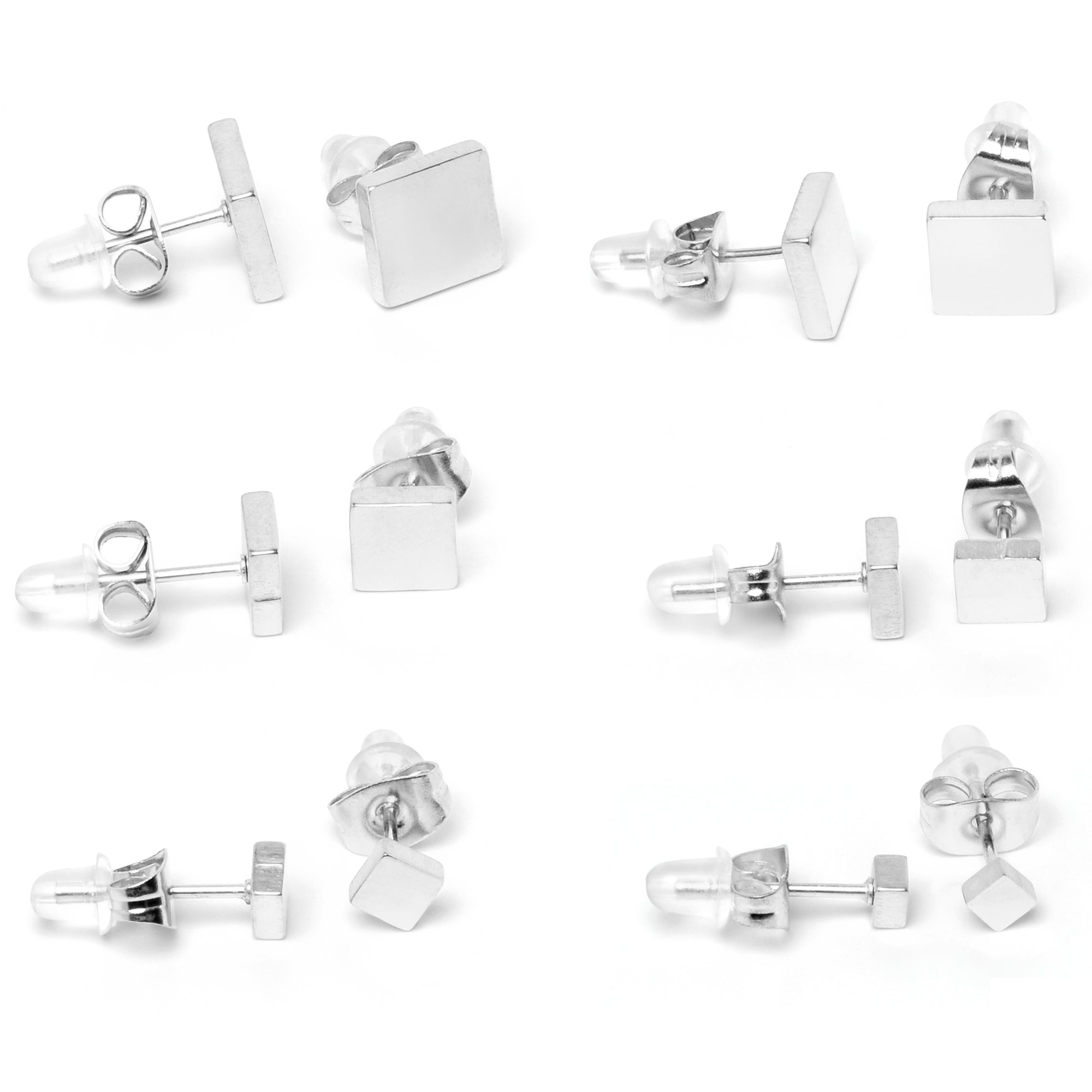 3mm-8mm Square Stud 316L Stainless Steel Earrings 6 Pack