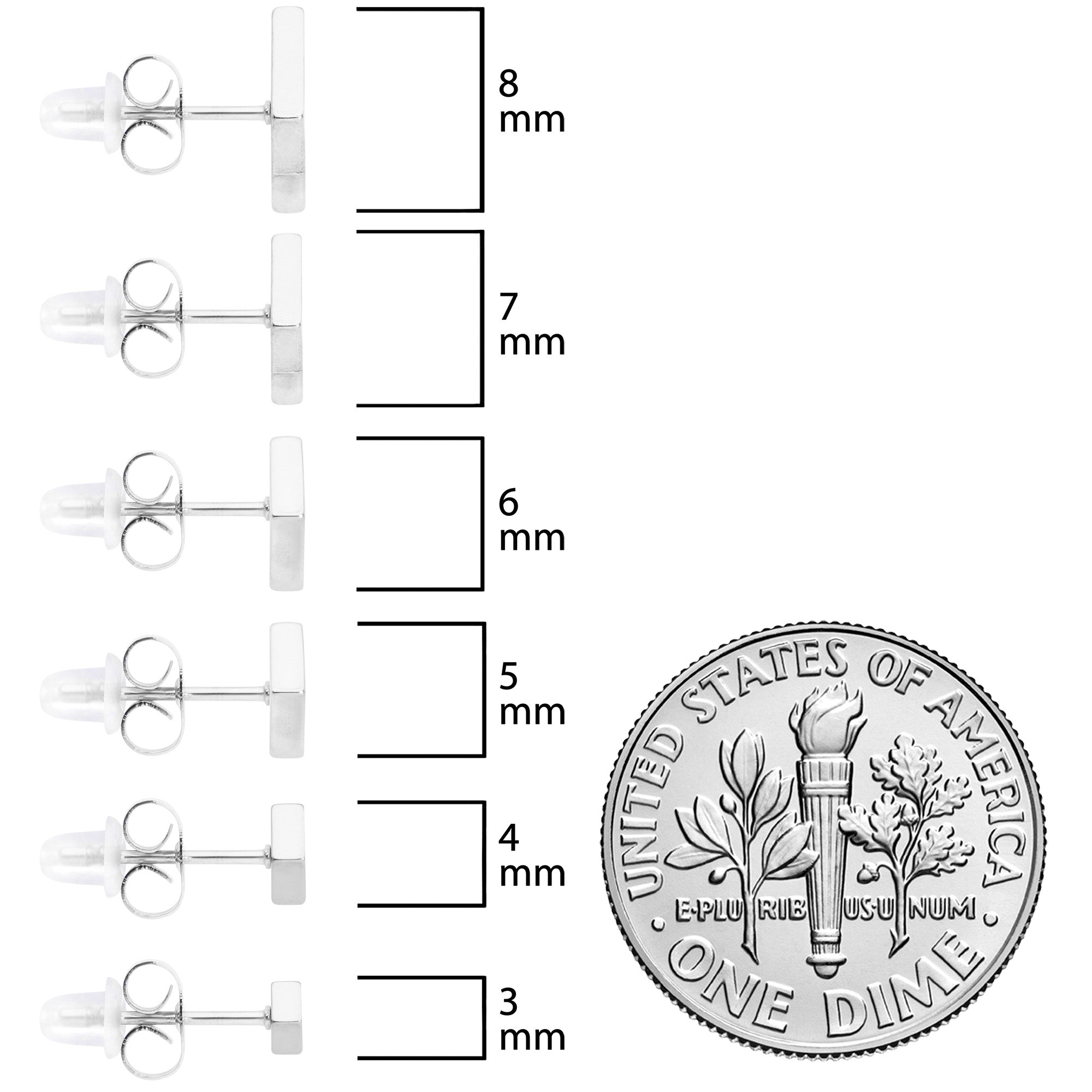 If you are looking for classic style that goes with everything, these 20 gauge earrings will have you ready for any occasion. They are made with 316L surgical grade stainless steel straight posts and have butterfly-style friction backs for a secure fit. They feature simple square ends with subtle style that will not overwhelm. You get one pair each in 3mm, 4mm, 5mm , 6mm, 7mm, and 8mm for a touch of classic chic to go with every look. These are sure to add some simple elegance to your pierced lobes. Sold as a set of six.