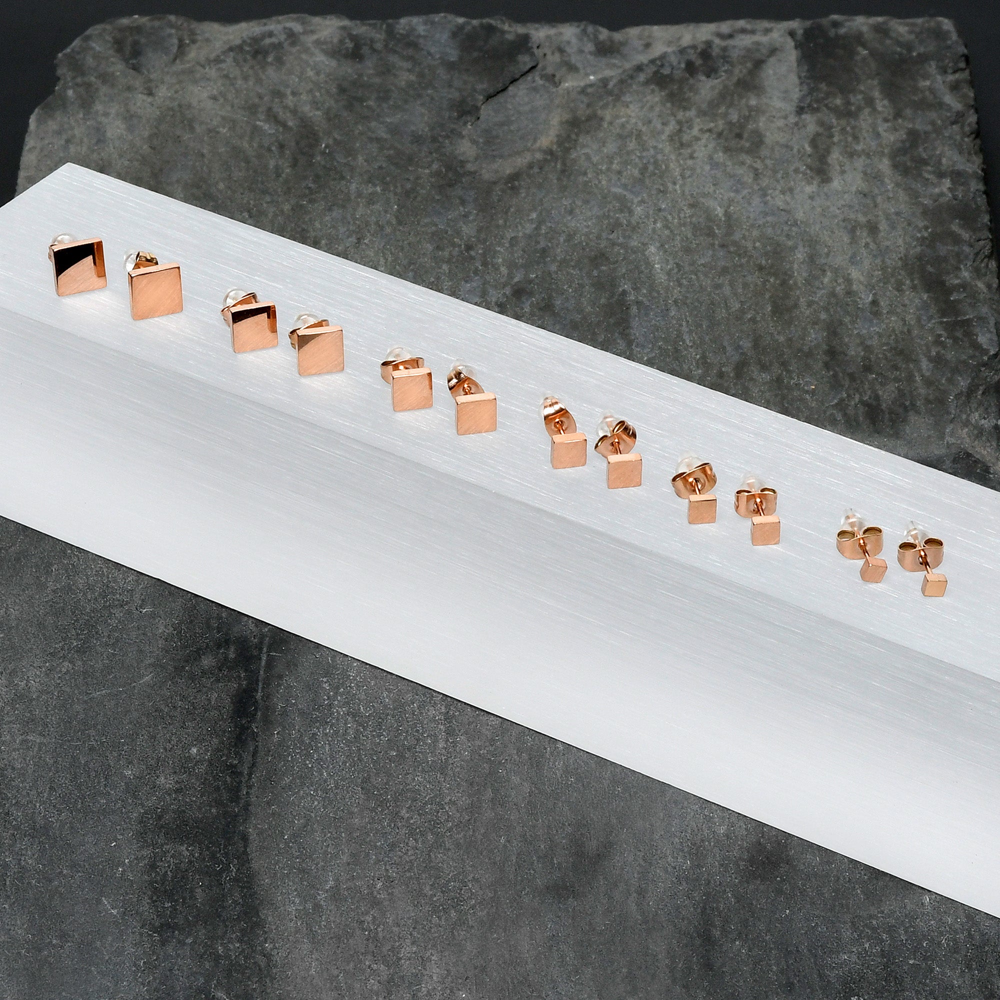 Hypoallergenic jewelry for sensitive skin3mm-8mm Square Stud Rose Gold Tone 316L Stainless Steel Earrings 6 Pack