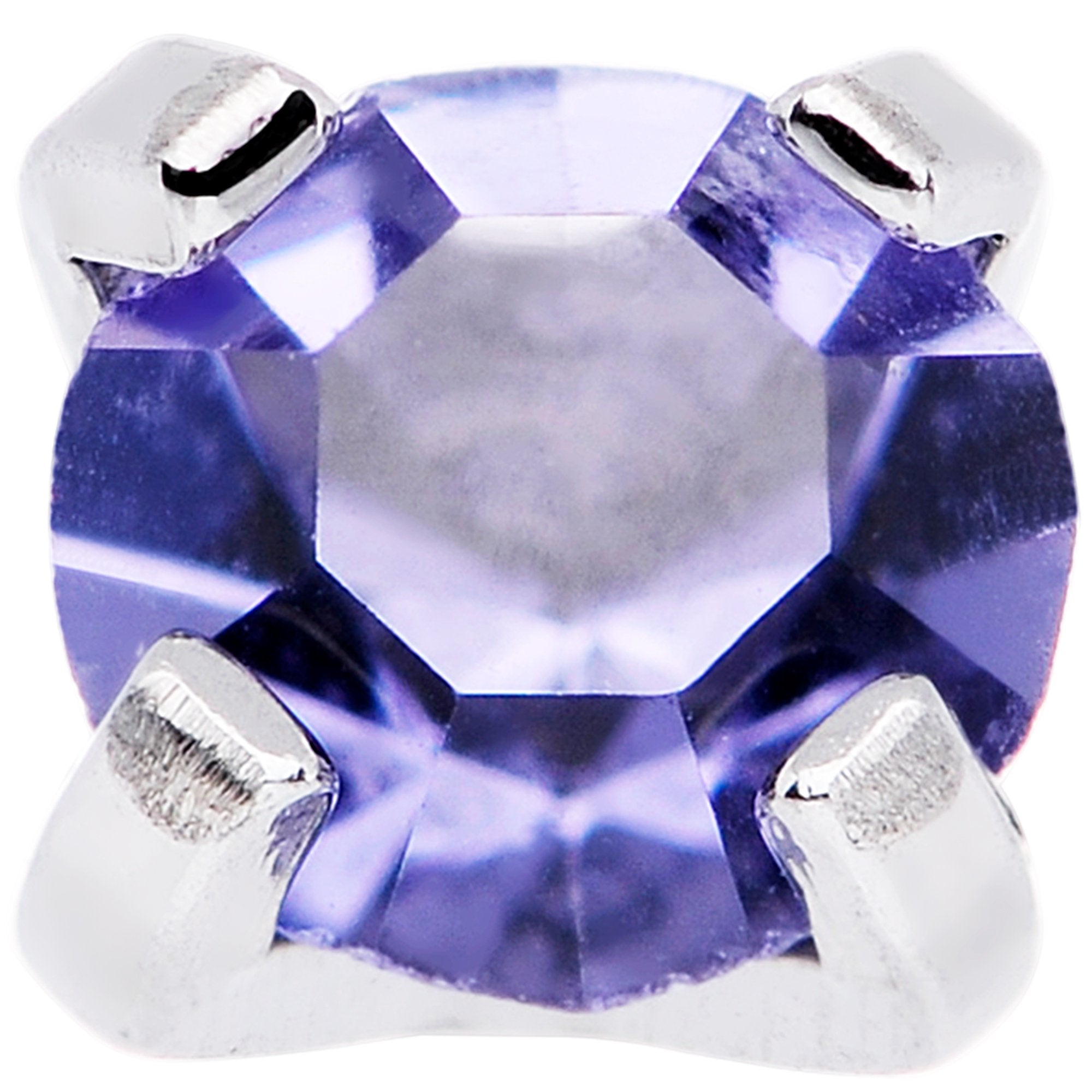 4mm round gem dermal top. Externally threaded dermal top can be used with a 16 gauge stem dermal anchor bottom. Purple round cut dermal jewelry with prong set gem.