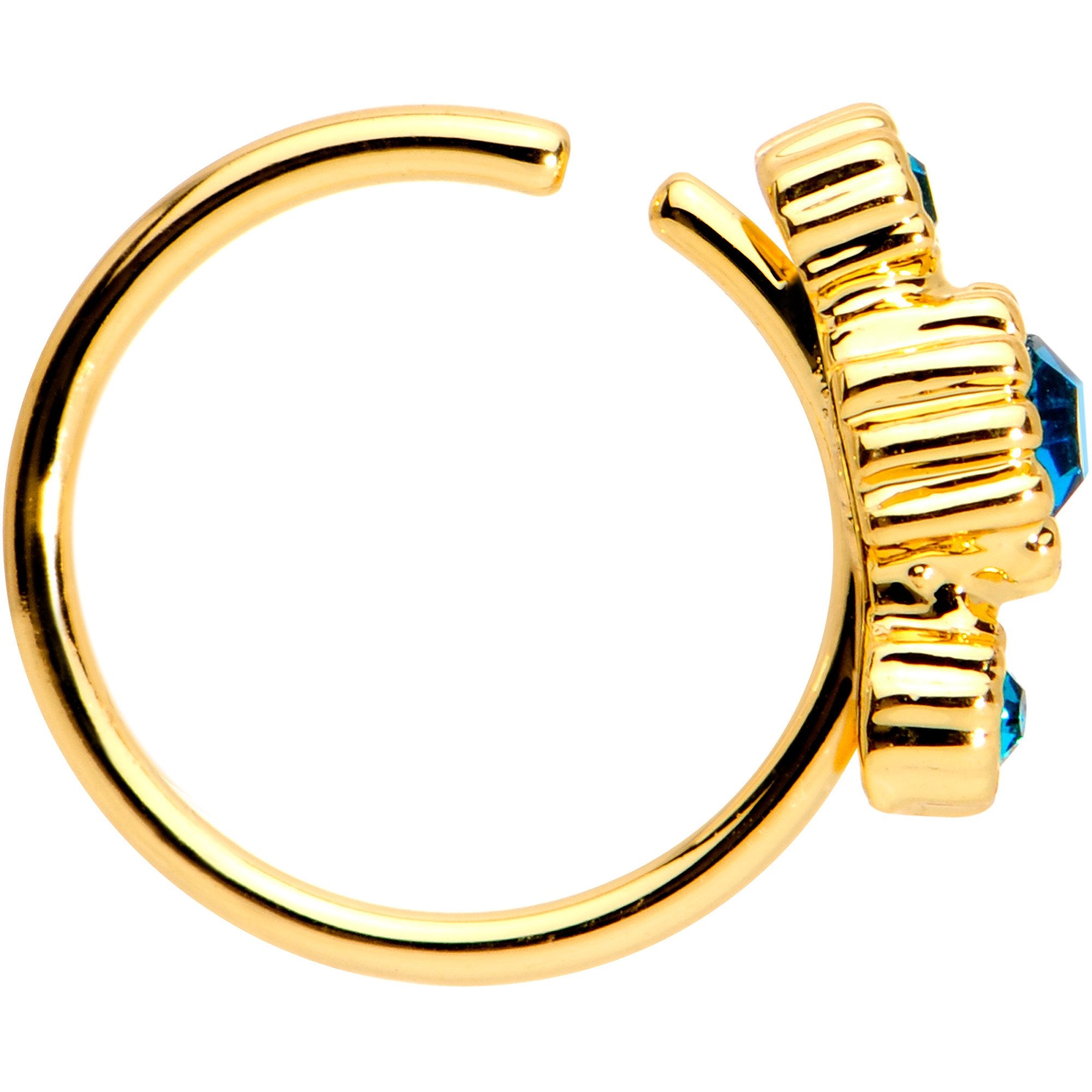 If you're into classic style this pretty 20 gauge nostril ring is right up your alley. Made with an adjustable 8mm gold IP over 316L surgical grade stainless steel circular ring, this nose hoop features a fashion charm formed with three green cubic zirconia gems. This universal jewelry features ends that can be twisted open and then twisted shut again to easily to fit into your nose piercing. This universal body jewelry can be used for multiple piercings including your nostril, cartilage, or any other place that is a perfect fit for you!