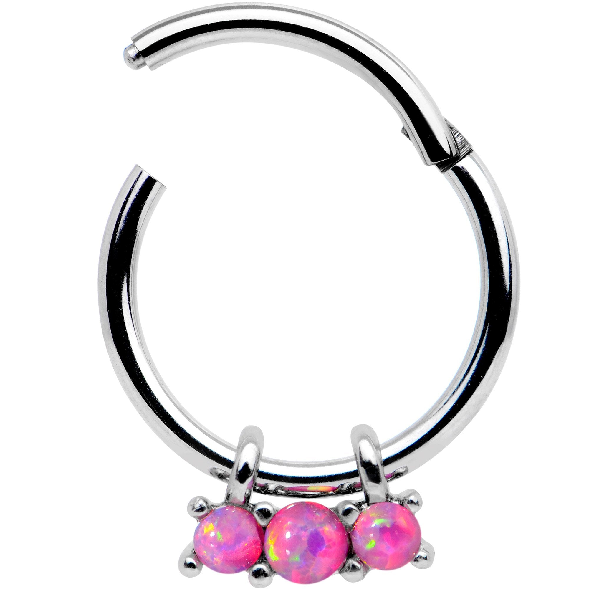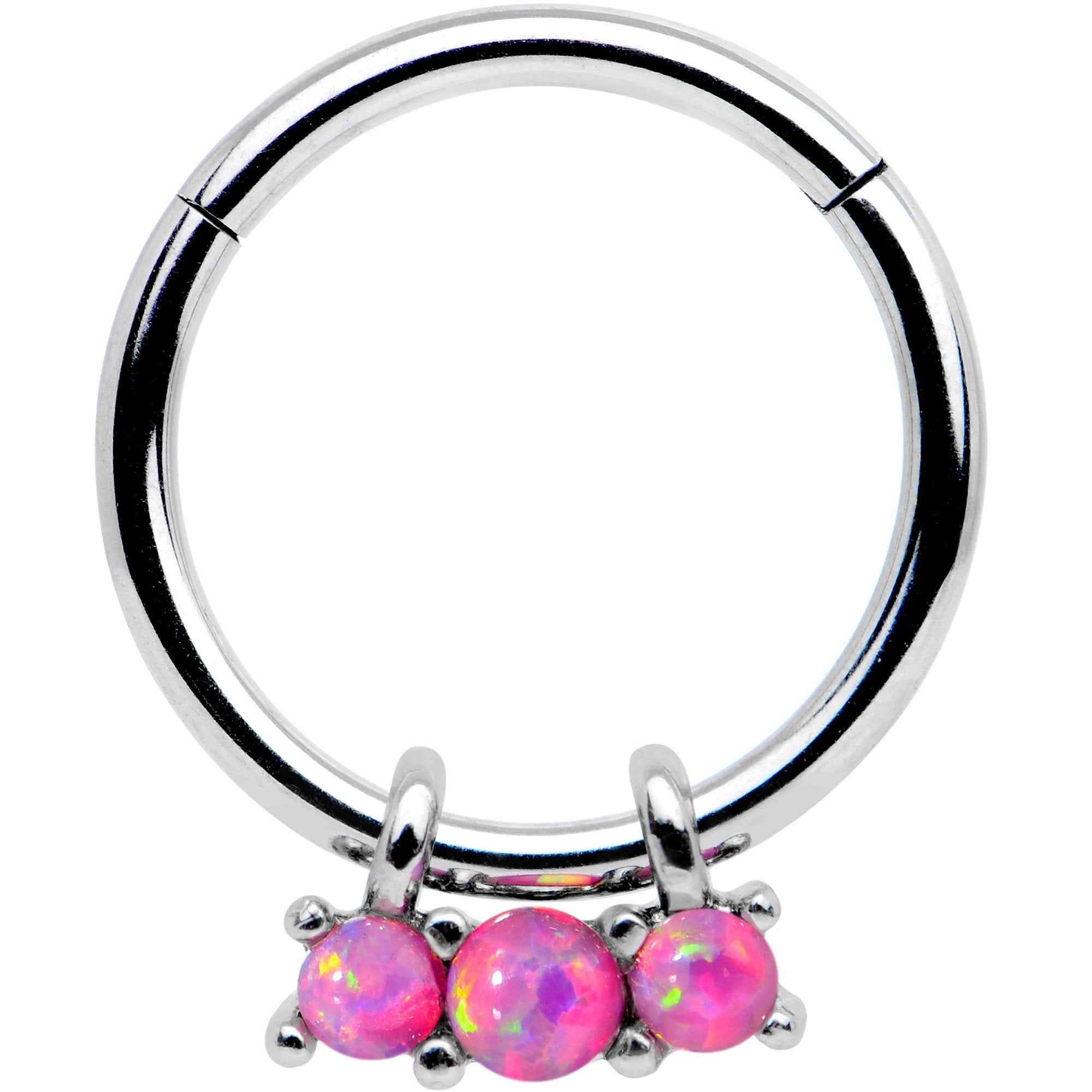 16G 3/8 Pink Synthetic Opal Trio Hinged Segment Ring