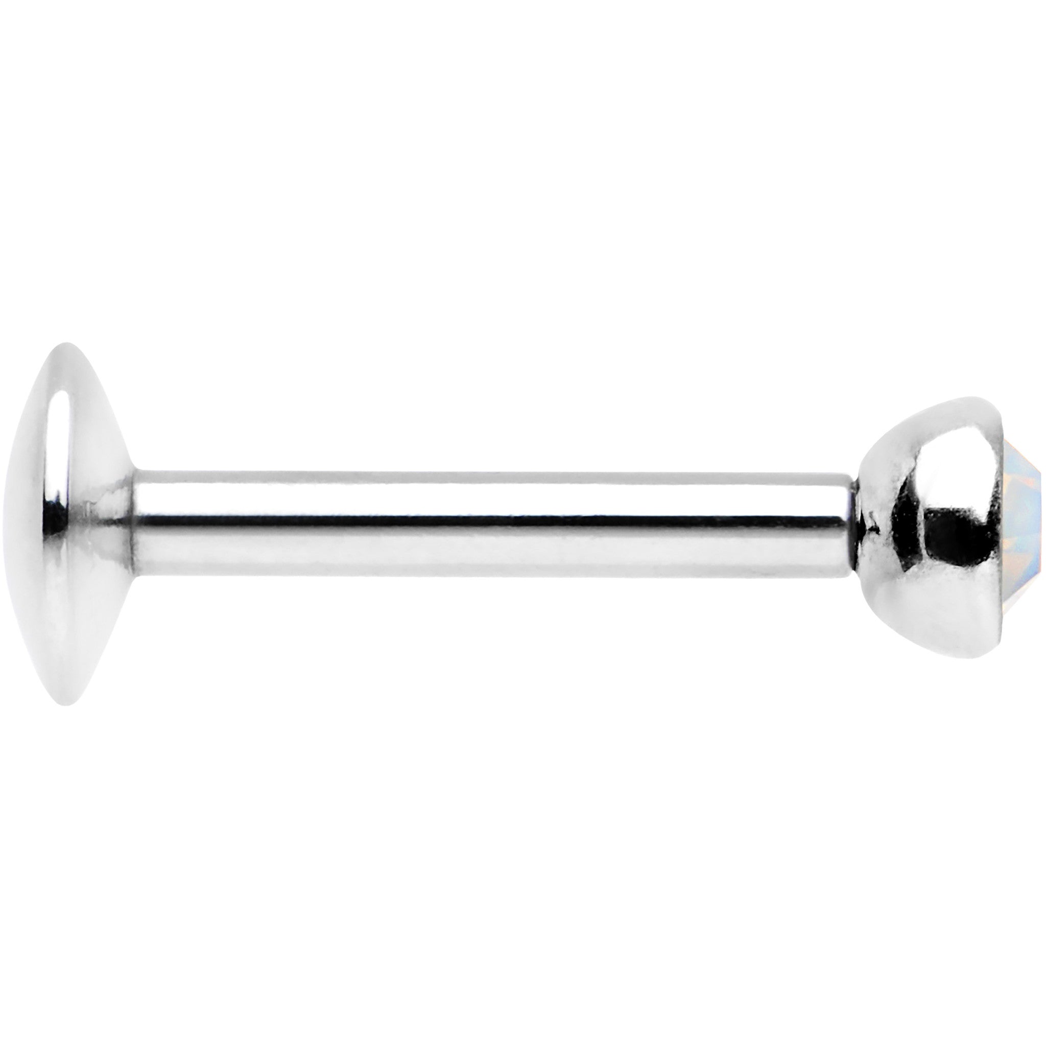 Hypoallergenic jewelry for sensitive skinUpgrade your piercing with something a little more eye-catching with this 16 gauge tragus stud. The cartilage earring features a straight internally threaded 316L surgical grade stainless steel barbell with a length of 5/16" and is highlighted by a 3mm flat top opalite stone press fit in its setting for added security to keep the glitz and glamour going strong.