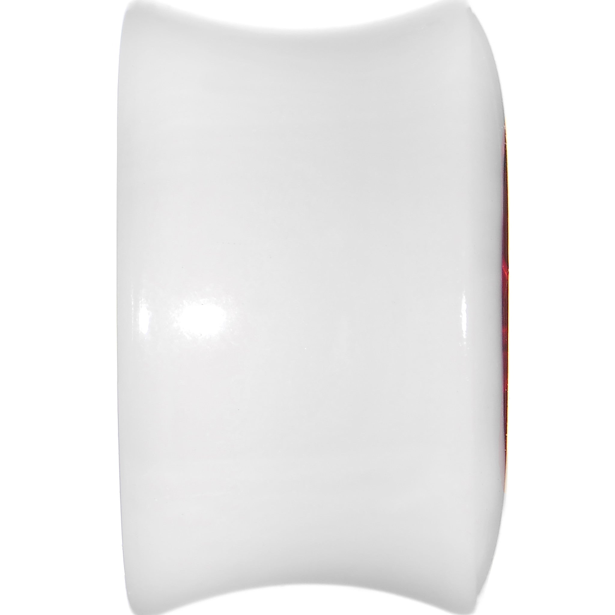 5/8 White Acrylic Red Metallic Rose Flower Plug