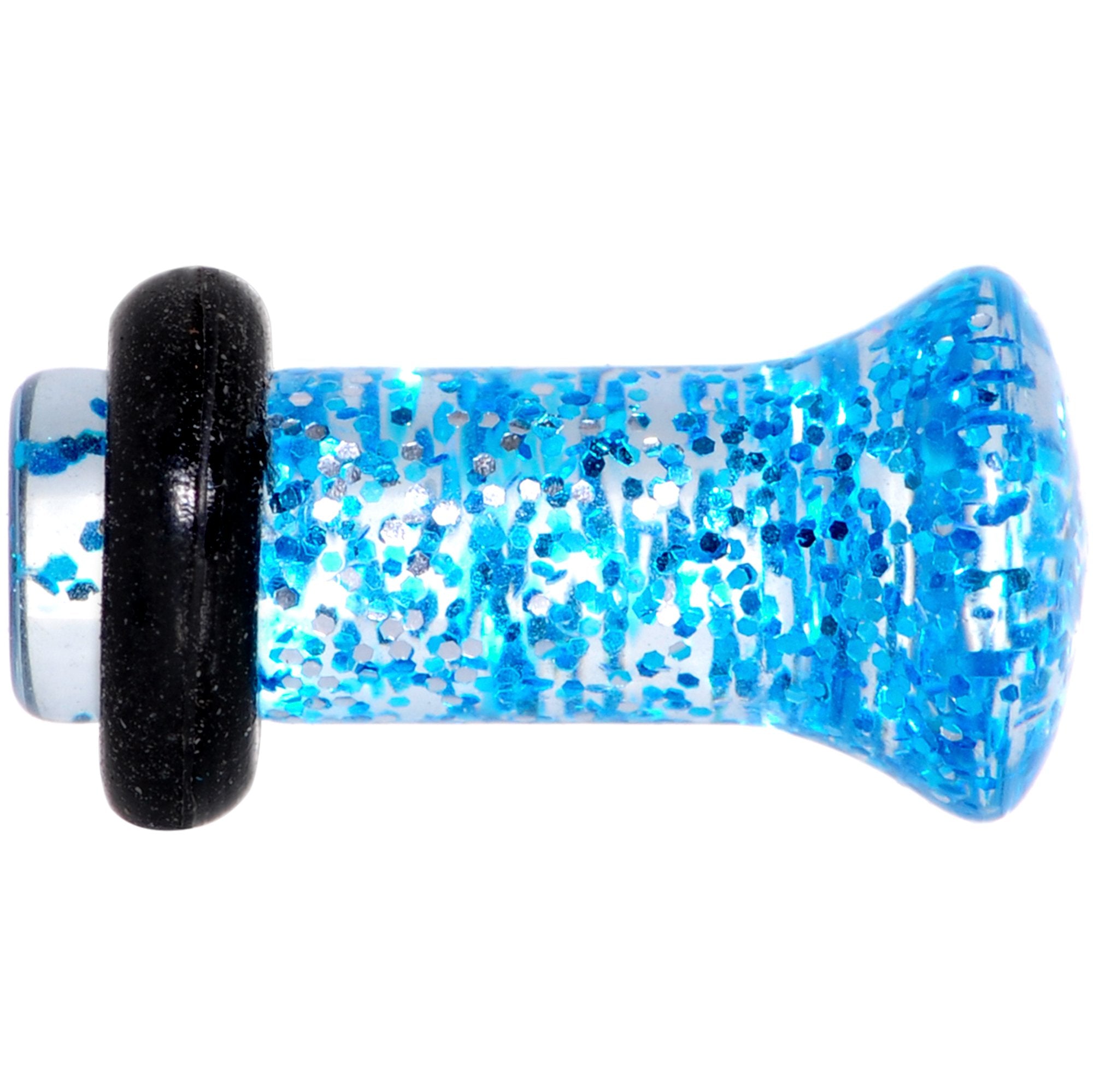 Hypoallergenic jewelry for sensitive skin.Express your interest in all things fashionable when you wear this pretty pair of acrylic ear plugs. Made from lightweight blue glitter acrylic, these 4mm ear gauges feature rubber o-rings for a secure fit and are sold as a set of two.