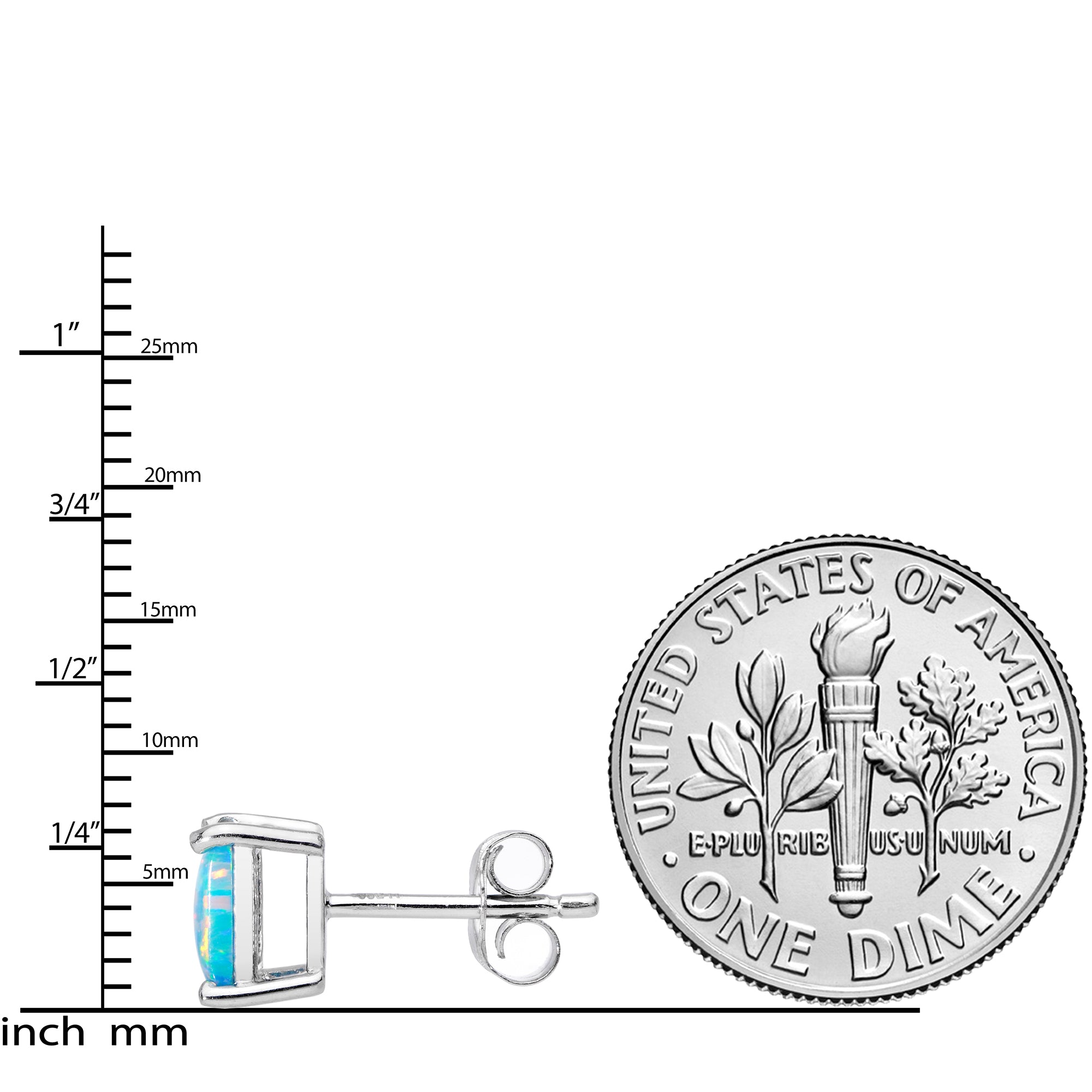 Catch the light and everyone’s attention with these stunning 6mm Sterling Silver Synthetic Opal Stud Earrings. Designed to shimmer with a kaleidoscope of colors, these earrings bring a touch of celestial beauty to your everyday look