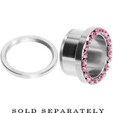 7/8 Stainless Steel Pink Gem Screw Fit Tunnel