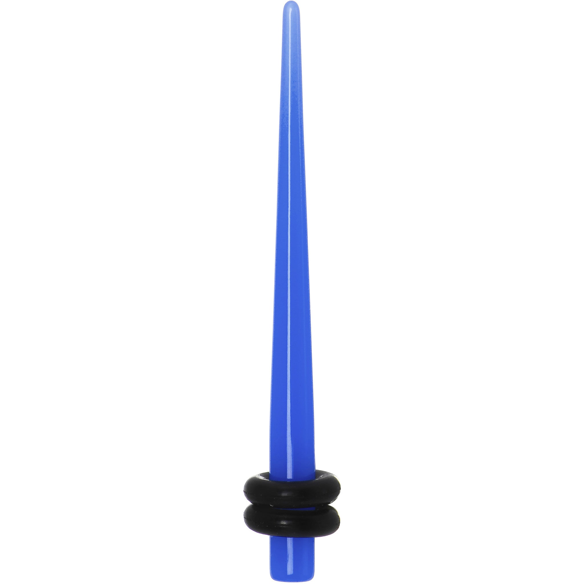 Hypoallergenic jewelry for sensitive skin.Add some color with this acrylic taper. 8 gauge taper in a blue color fashioned with two rubber O-rings. This acrylic expender is sold individually.