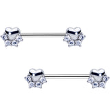 9/16" Clear CZ Gem Be My Valentine Heart Barbell Nipple Ring Set