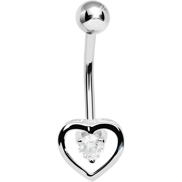 Wear your heart on your navel with this dazzling sterling silver belly button ring fashioned with a solitaire cubic zirconia. The heart is created from real CZ and .925 sterling silver, which is stamped on the navel ring's barbell.