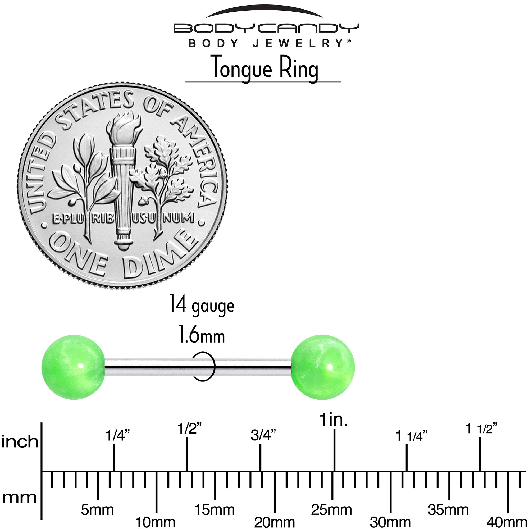 Brighten up your style when you are rocking this 14 gauge tongue jewelry. It is made with a 5/8 inch 316L surgical grade stainless steel straight barbell with 6mm ball ends. It features bright color acrylic ball ends for gorgeous burst of color that is sure to get noticed. Let a new day dawn for your look when you're rocking this bright tongue piercing jewelry.