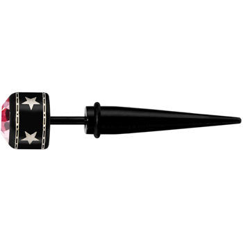 Acrylic Pink Gem Silver Star Fake Taper Ear Plug