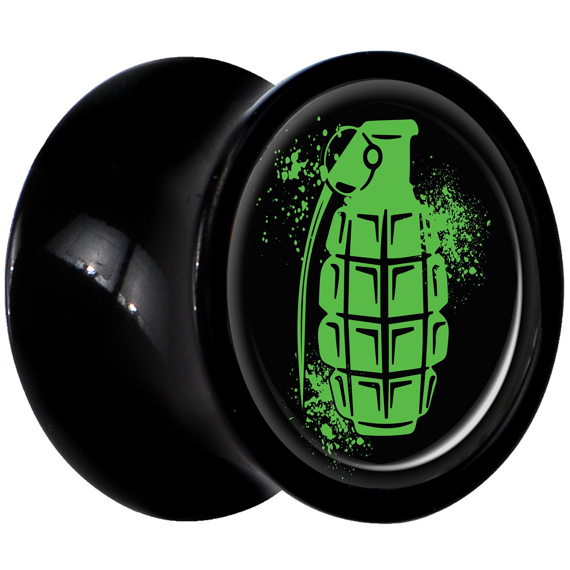 If you love the color green and pop culture images like grenades then this pair of plugs is right for you! Made with lightweight black acrylic, these 8mm ear gauges are made with a saddle style design for comfortable wear and are sold as a set of two for you.