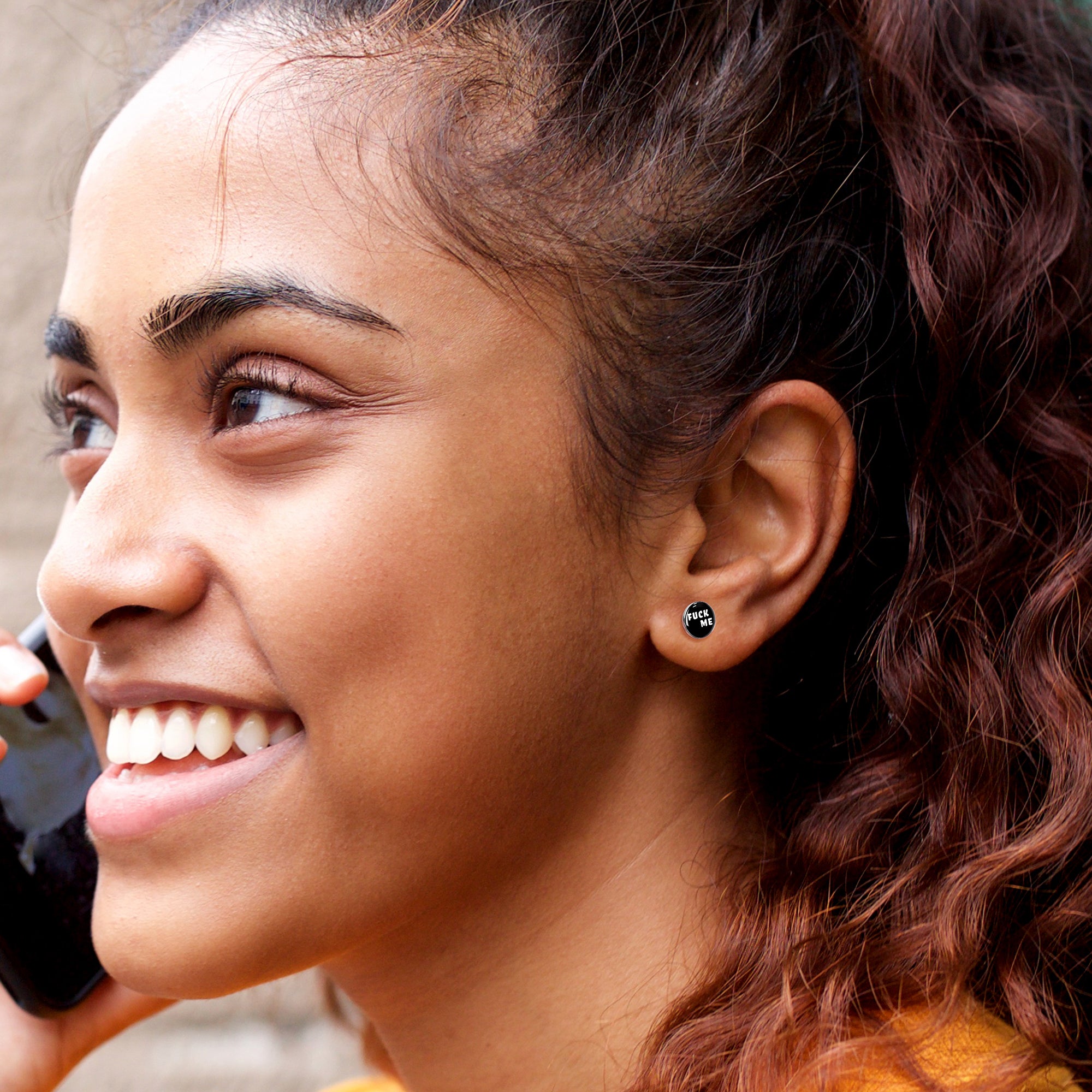 Hypoallergenic jewelry for sensitive skin.Black and White Fuck Me Stud Earrings