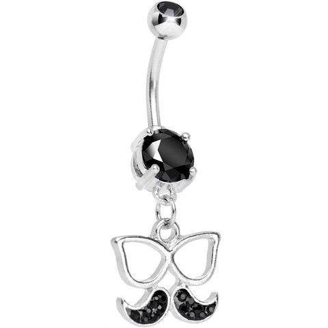 Black Gem Chichi Glasses and Paved Mustache Dangle Belly Ring