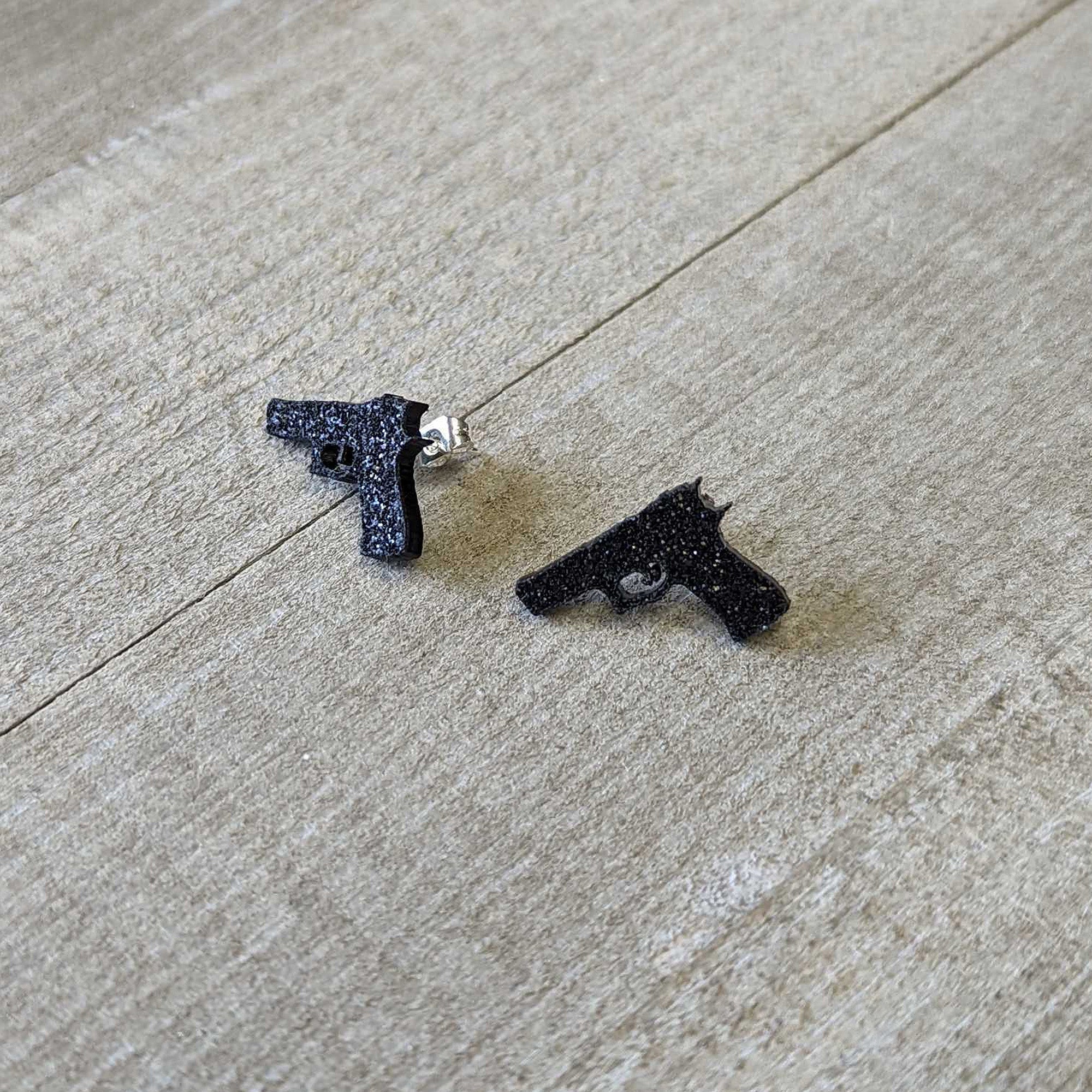 Black Glitter Gun Stud Earrings Set