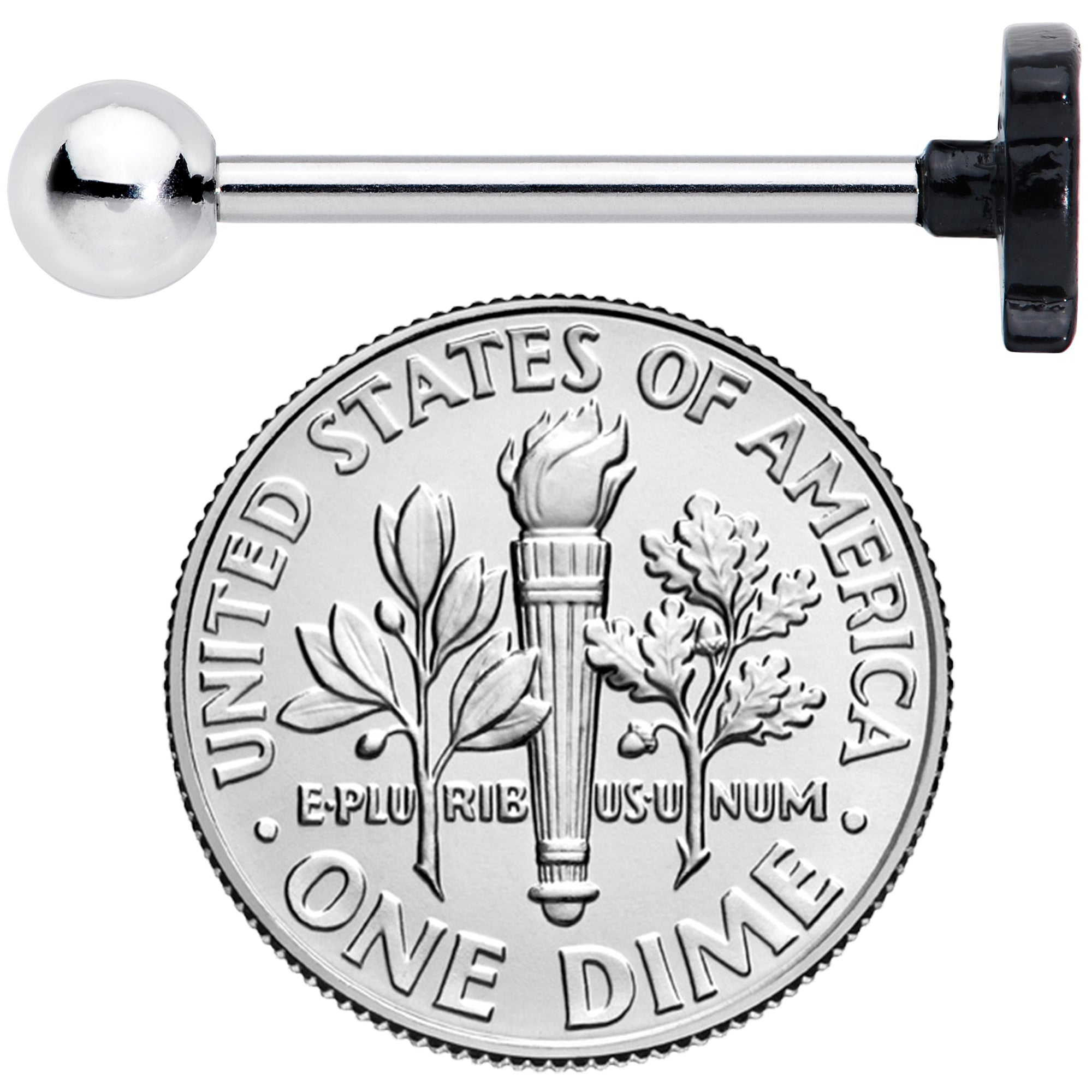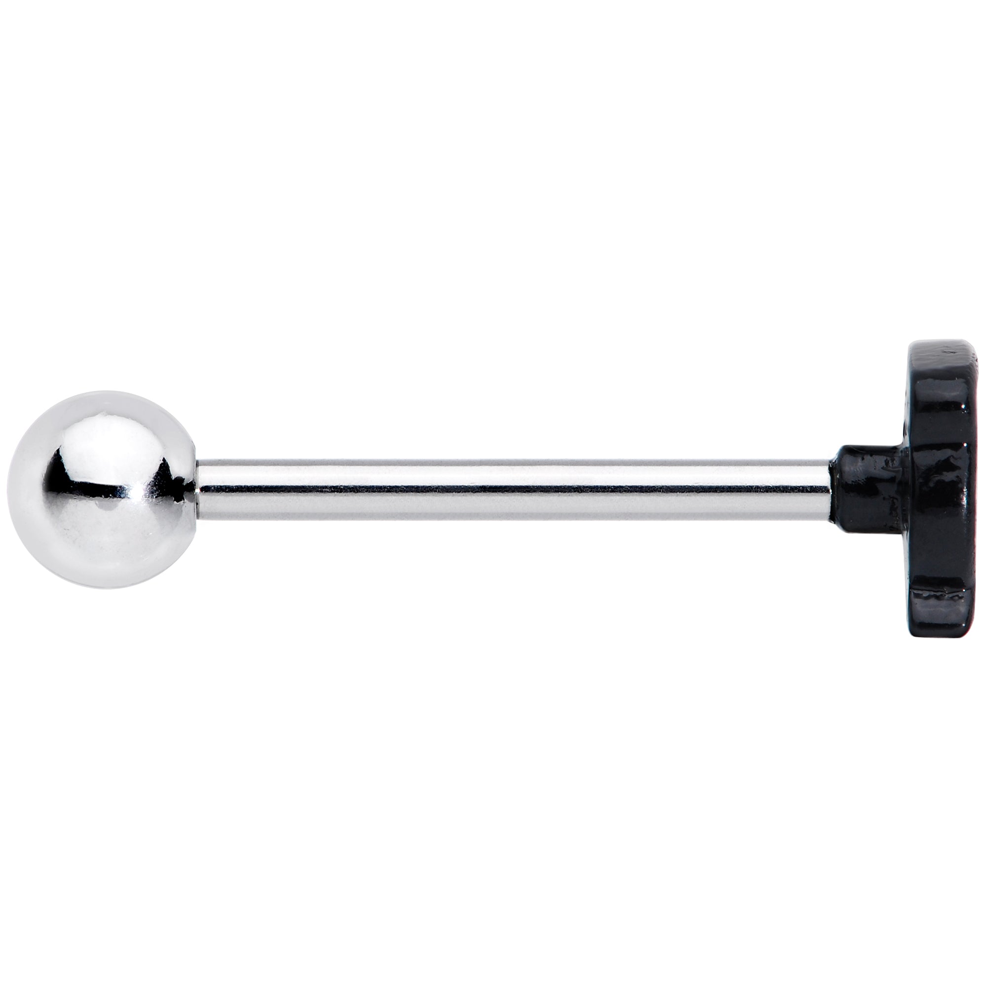 Are you a sweet witch or a naughty witch? If you said the first one, we've got a 14 gauge tongue ring that's just for you! It's made with a 5/8" durable 316L surgical grade stainless steel straight barbell with a 5mm bottom ball end. The top end features a large black cauldron charm filled with a mysterious purple potion. Emblazoned on the cauldron are the words "sweet witch" in a lovely looping font and it's further embellished with a tiny crescent moon. Whether you're a maker of magic or simply hardcore for Halloween, show off your sweet side with this wonderfully witchy tongue jewelry!