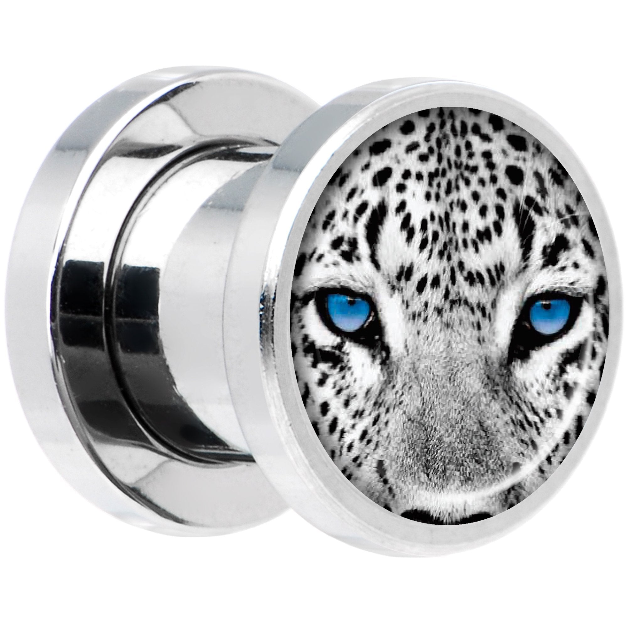 Black White Leopard Eyes Steel Screw Fit Plug Set 0G