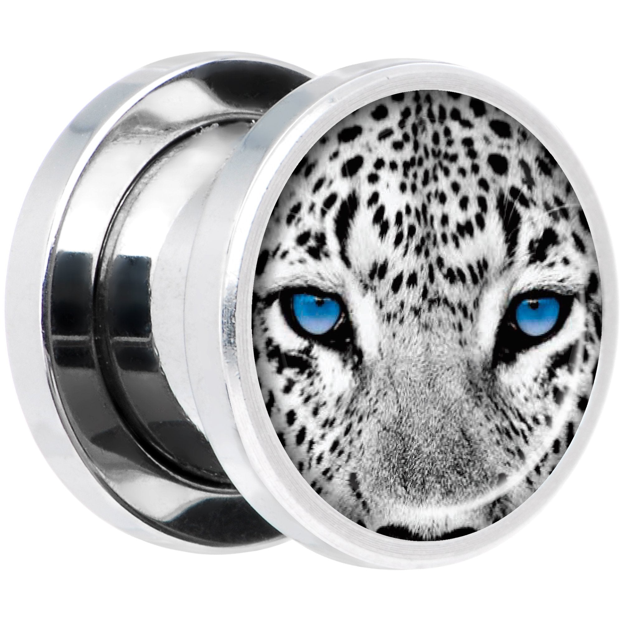 If you love cats of all sizes but especially black and white leopards then this pair of double flare plugs is right for you! Made with durable 316L surgical grade stainless steel, these 10mm ear gauges are made with a screw fit design for easier insertion and removal and are sold as a set of 2 for you.