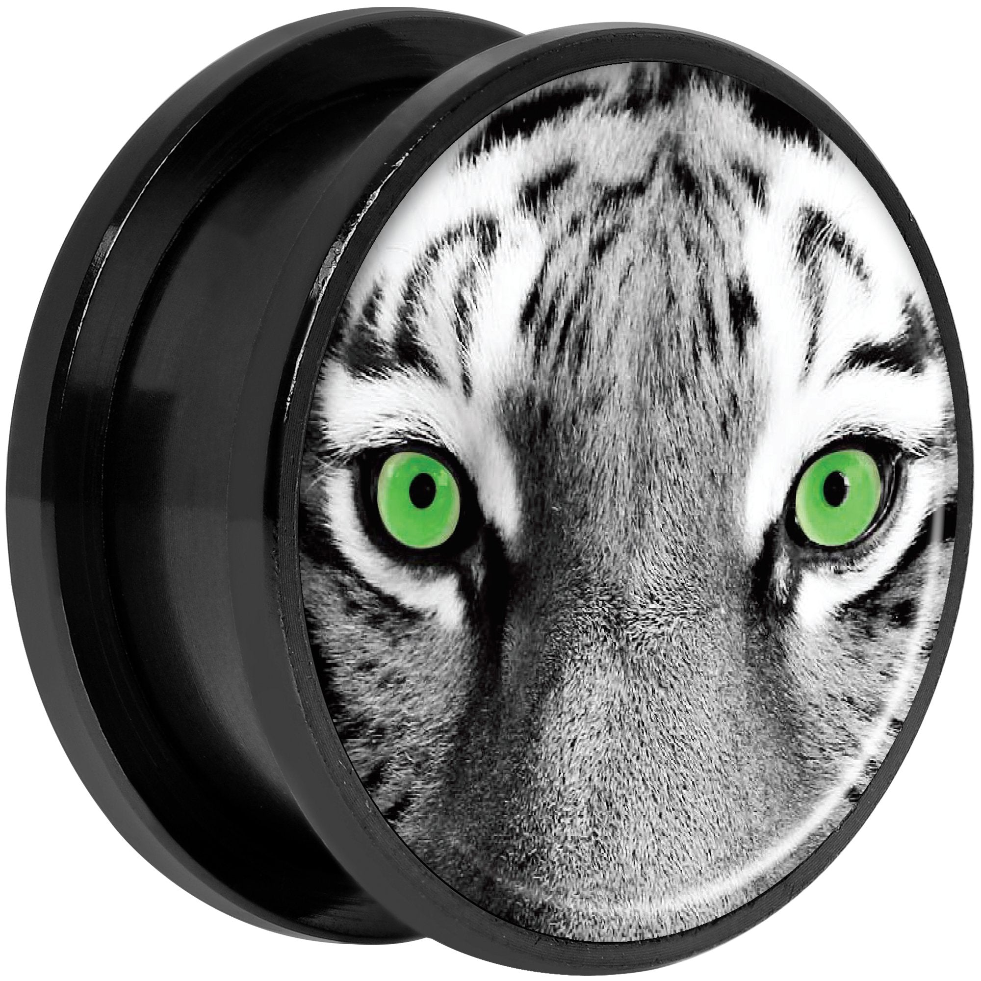 Black White Tiger Eyes Black Anodized Screw Fit Plug Set 20mm