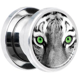 Black White Tiger Eyes Steel Screw Fit Plug Set 00 Gauge