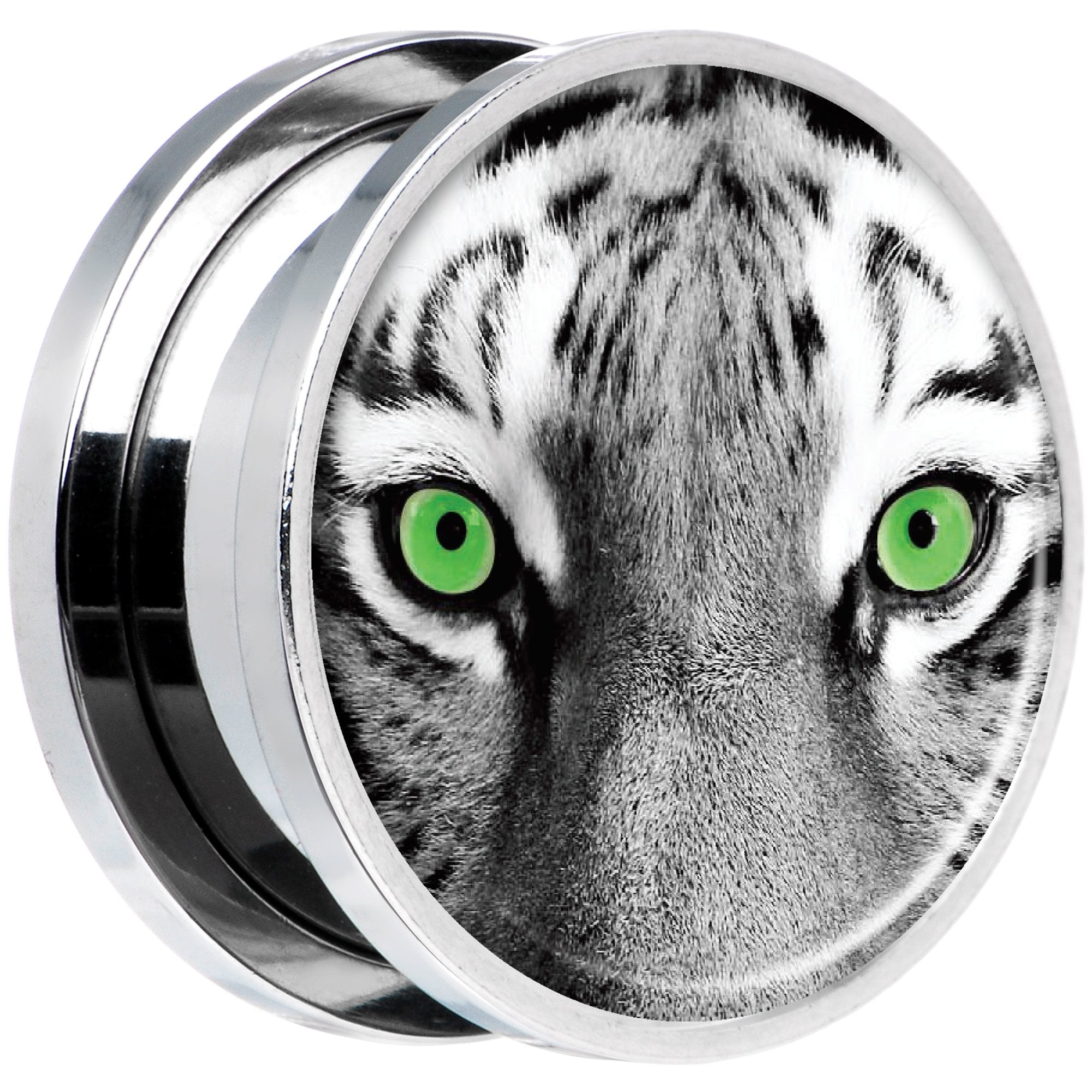 Black White Tiger Eyes Steel Screw Fit Plug Set 18mm