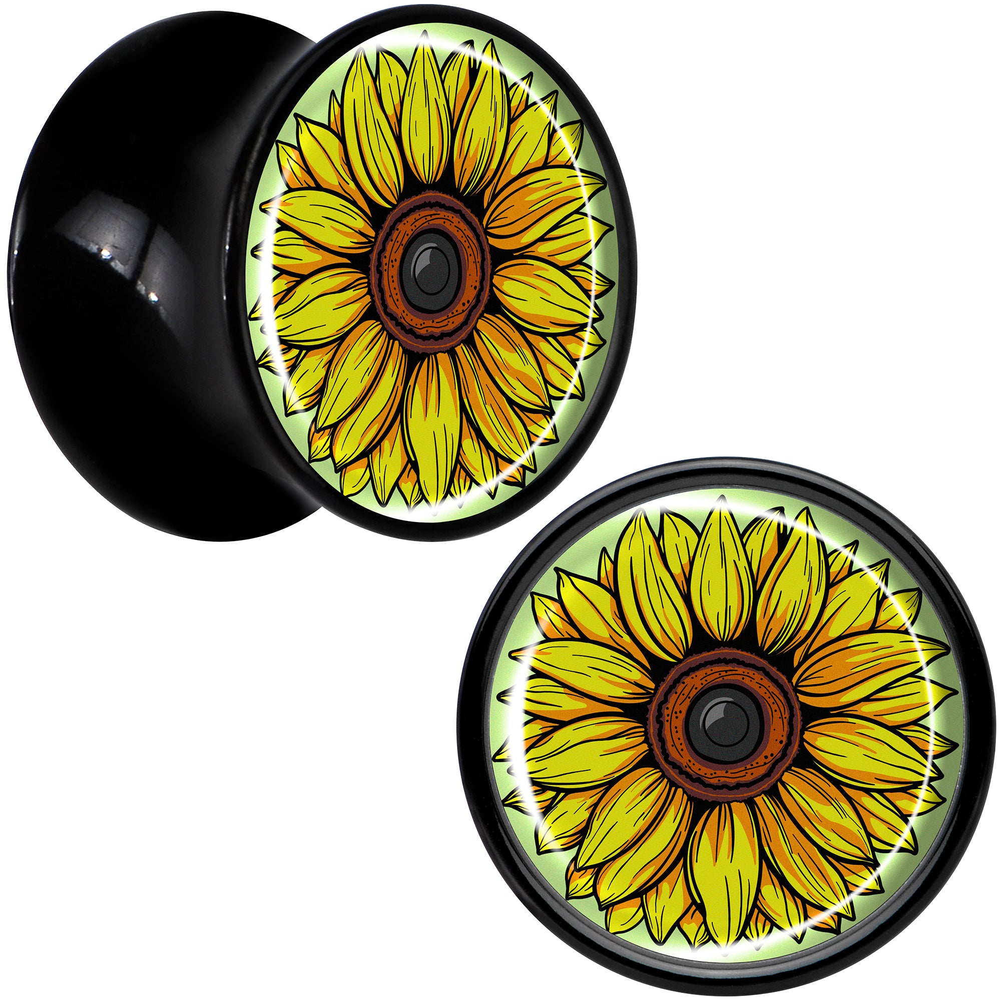 Blossom Creation Yellow Sunflower Black Acrylic Saddle Plug Set by Onyx O