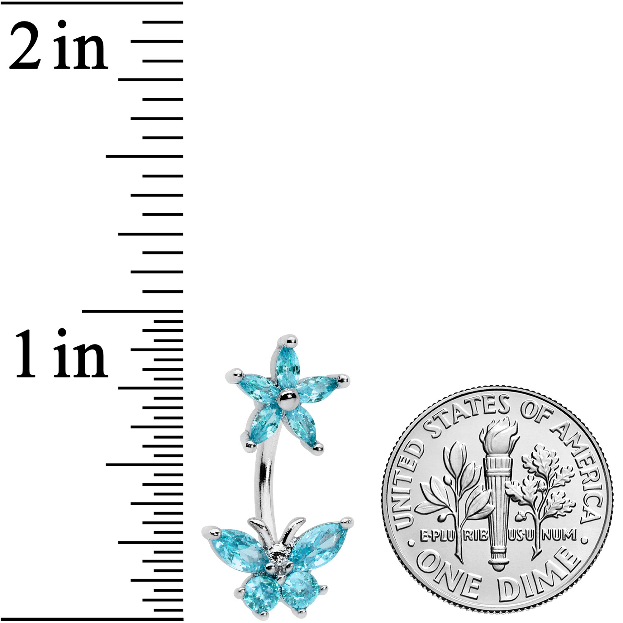 Blue CZ Gem Flower Butterfly Double Mount Belly Ring