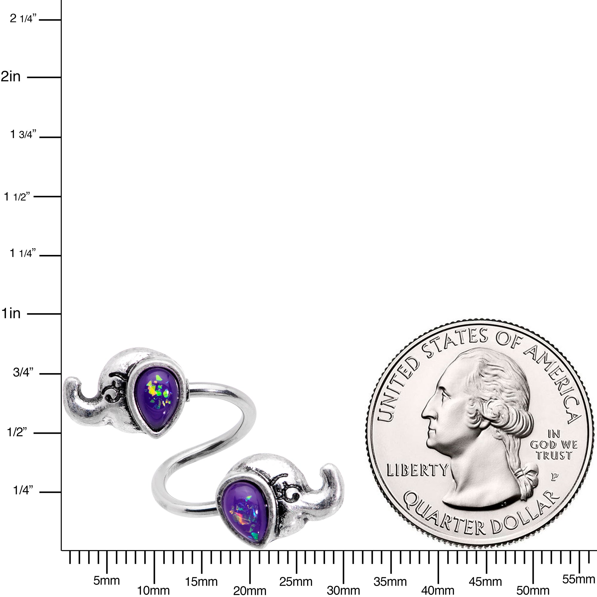 Blue Faux Opal Elegant Elephants Spiral Twister Belly Ring