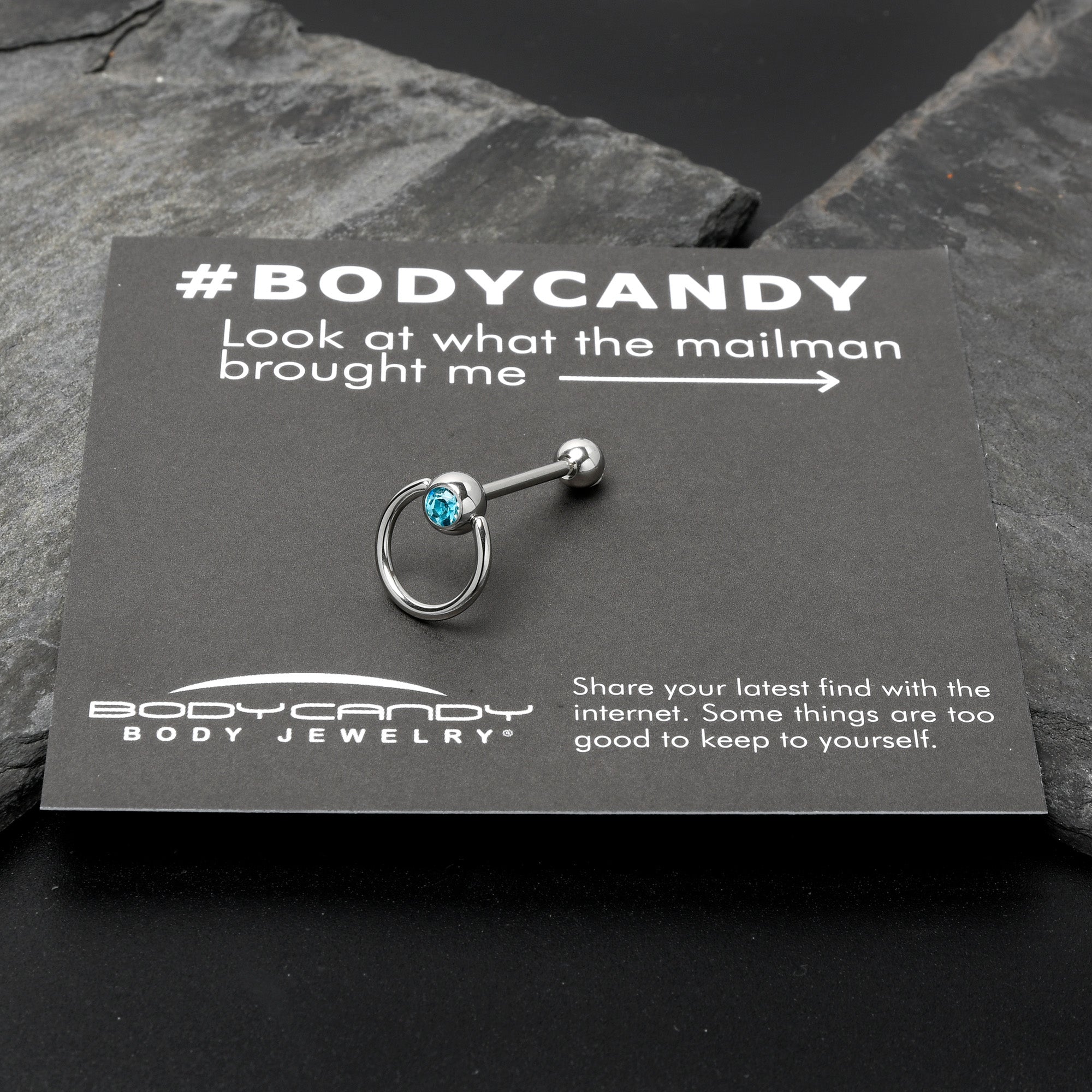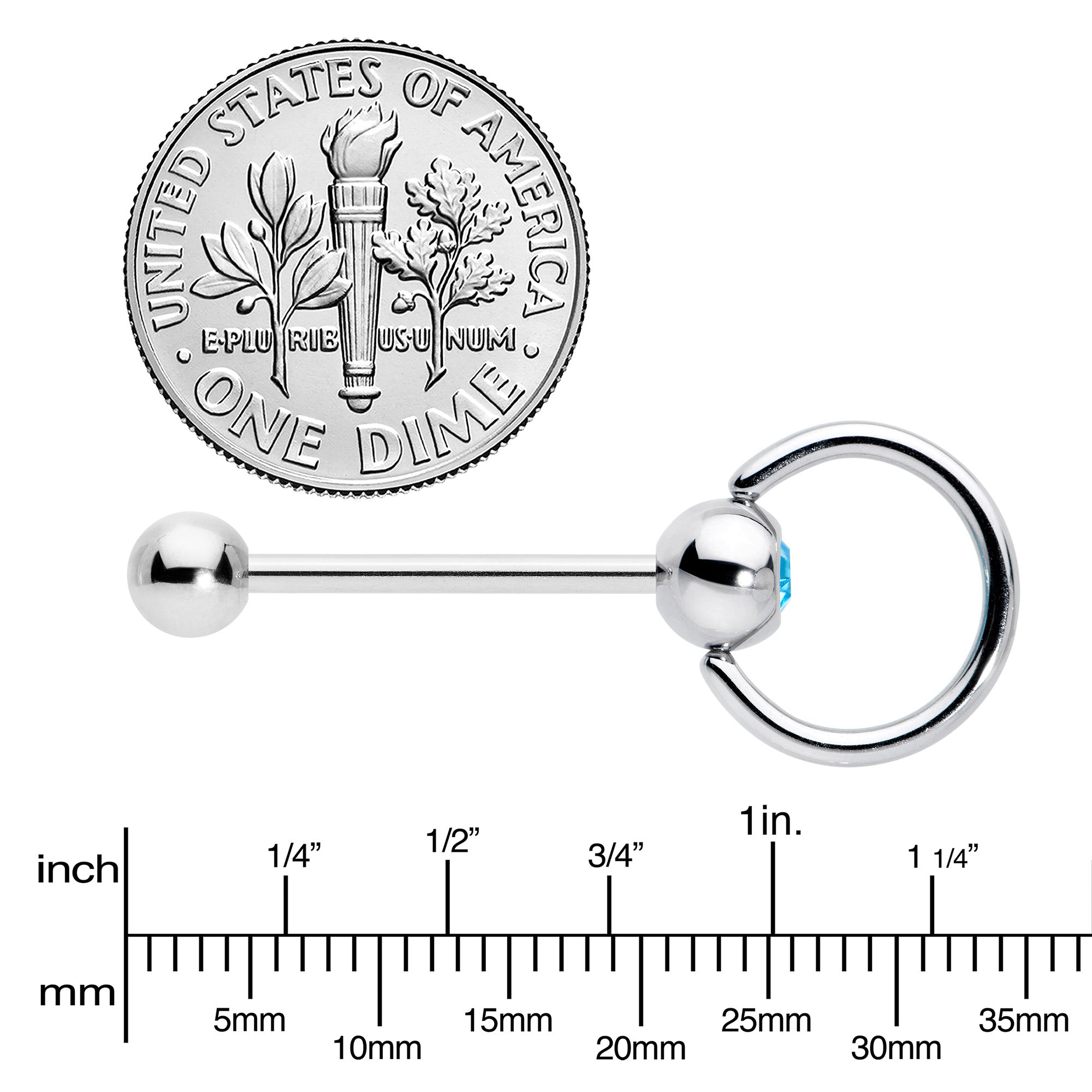 Blue Gem 316L Surgical Steel Captive Ring End Barbell Tongue Ring
