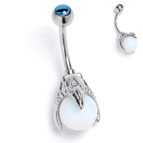 Blue Gem Claw Hand White Orb Belly Ring