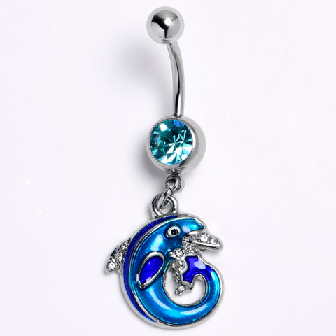 Blue Gem Dolphin Blue Beauty Dangle Belly Ring