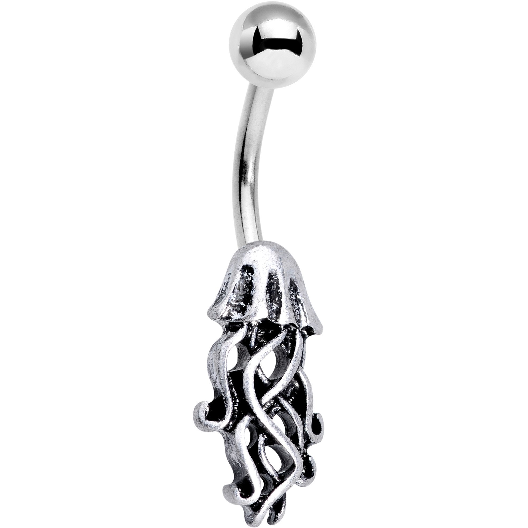 This pack of four belly rings is soaked in underwater style! Included in this pack of 14 gauge belly button piercings are a jellyfish belly ring, a blue gem starfish belly ring, a mermaid scale accent belly ring, and an ocean blue gem belly ring. Each belly ring is 3/8" in length and features a curved barbell made with durable 316L surgical grade stainless steel. This treasure trove of belly rings is perfect for any ocean lover! Sold as a set of four.