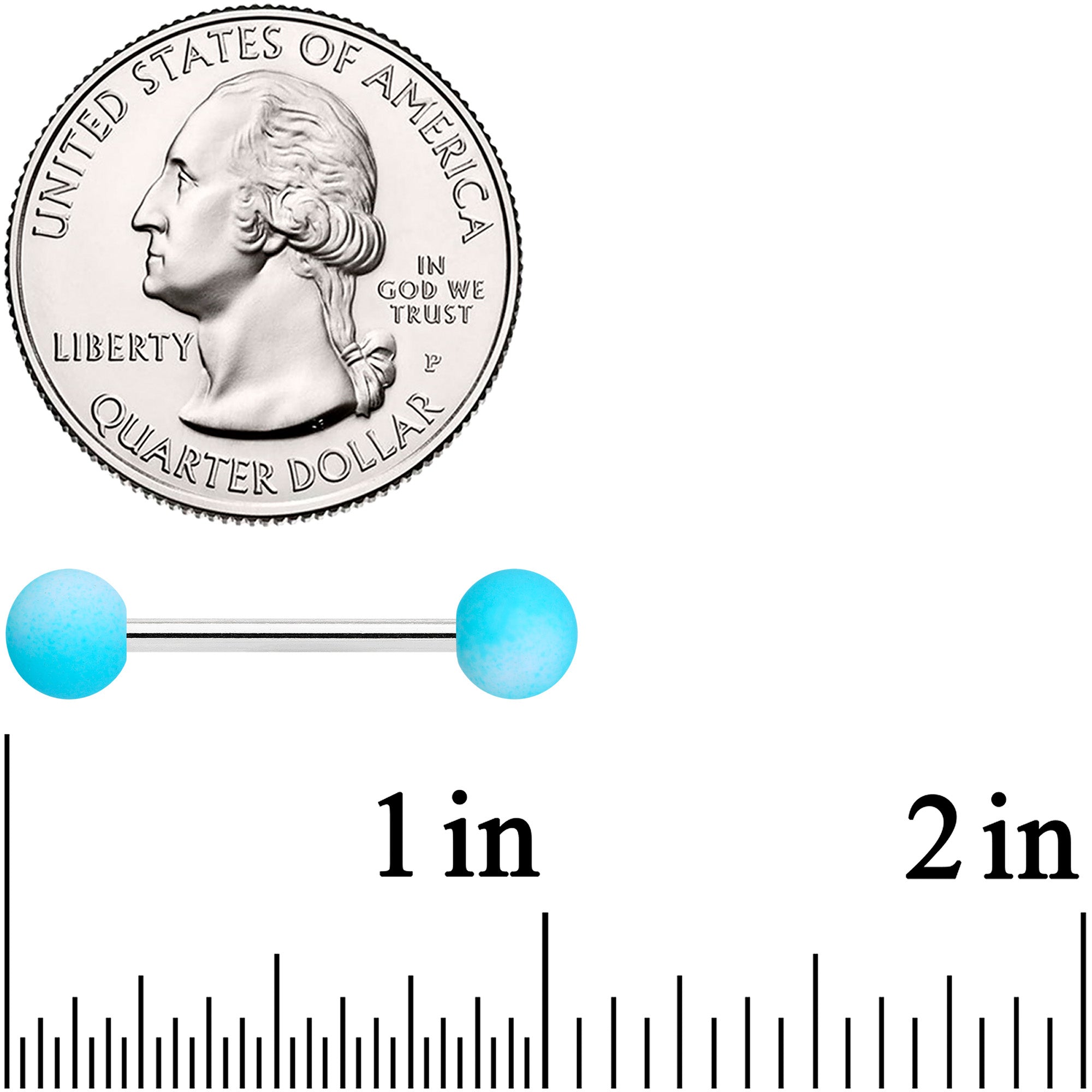 Some things need a softer touch....like this 14 gauge tongue ring! It's made with a 5/8" durable 316L surgical grade stainless steel straight barbell. It has 5mm ball ends that feature a finish that's slightly soft to the touch, a perfect contrast to the simple white and bright blue ombre colors! These bright, eye-catching colors are sure to stand out while their soft finish will ensure you will want to keep this tongue jewelry in your tongue piercing!