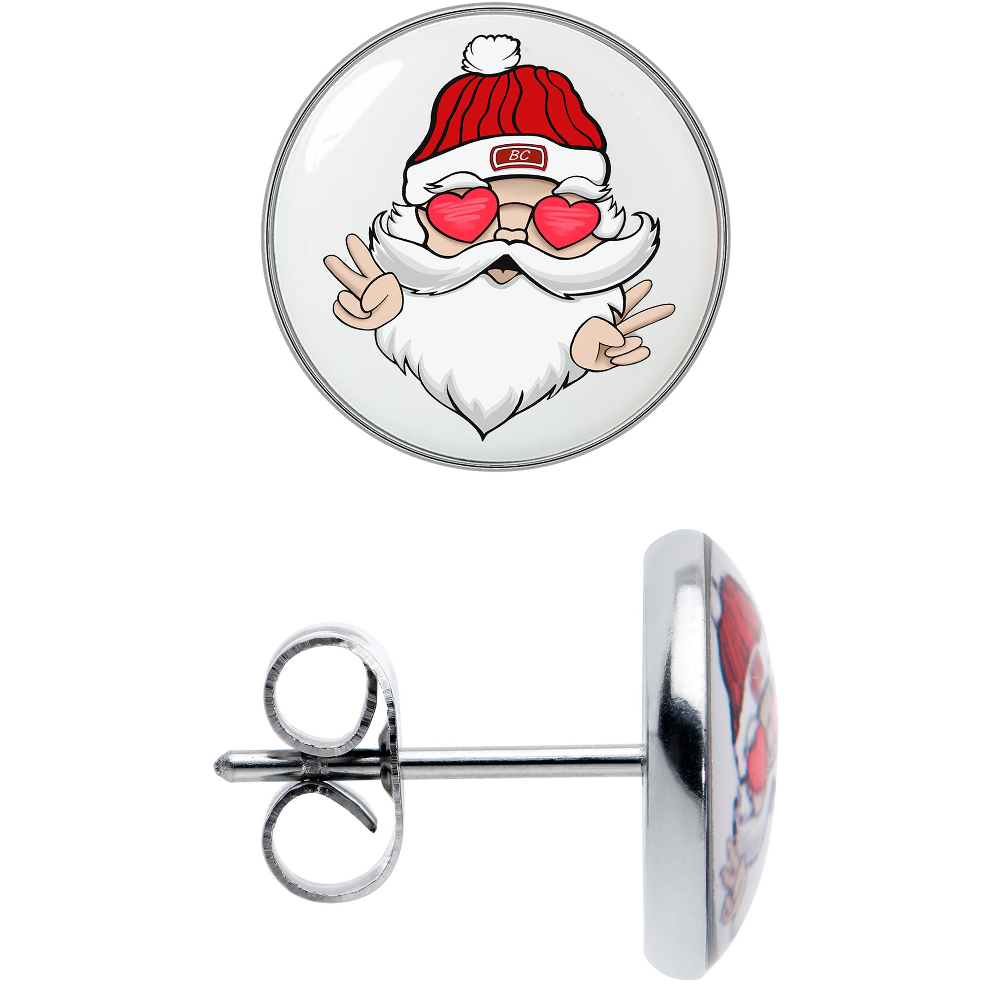 Hypoallergenic jewelry for sensitive skin.Christmas Peace Love Santa Stud Earrings