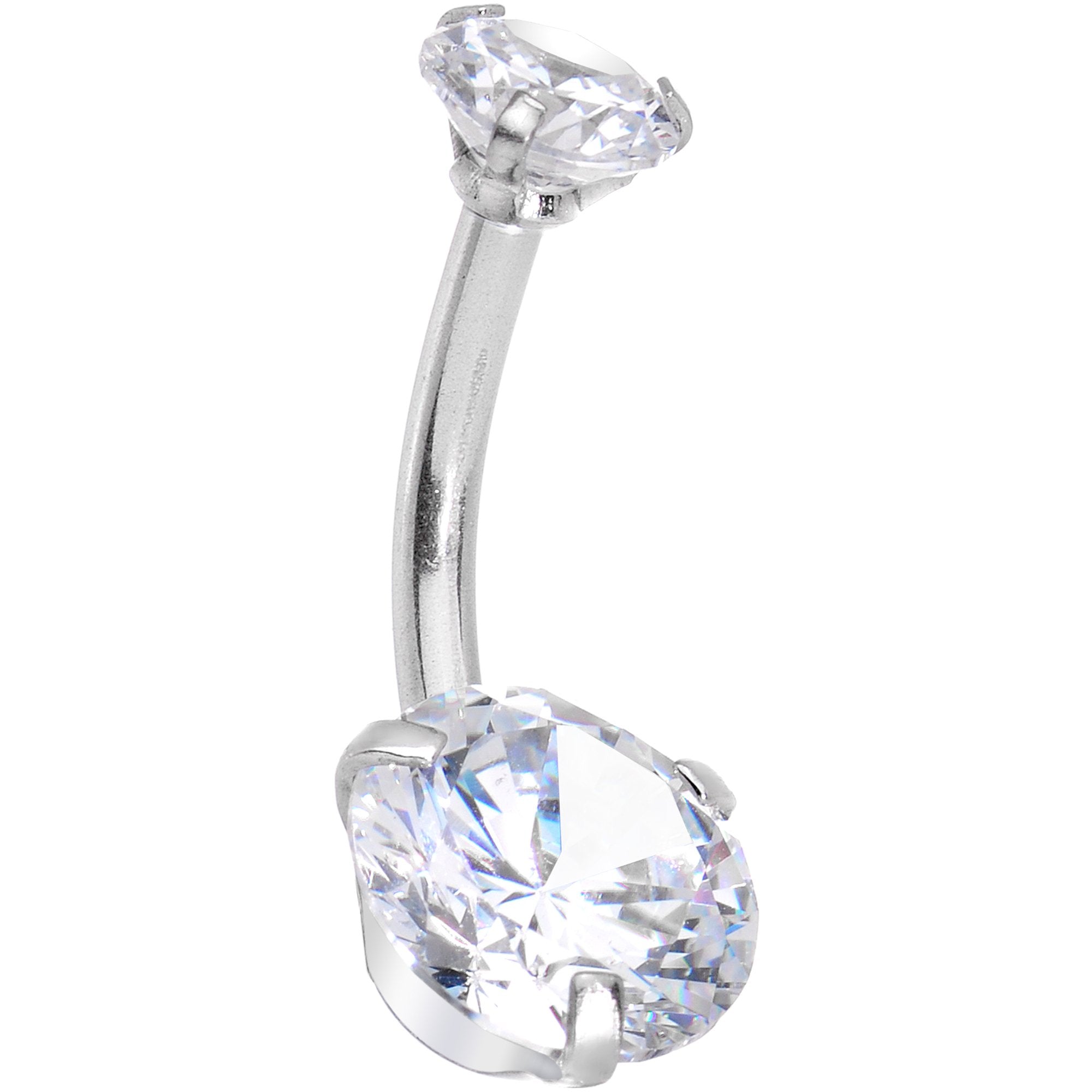 This sparkling, glamorous belly ring will definitely bring out your sassy side. Alternating clear and black cubic zirconia gems form a sparkling charm centerpiece on this 14 gauge belly button piercing. The gem charm is mounted on a 7/16" curved barbell made with durable 316L surgical grade stainless steel complete with top and bottom ball black gems. Upgrade your belly button jewelry with this glamorous piercing today!