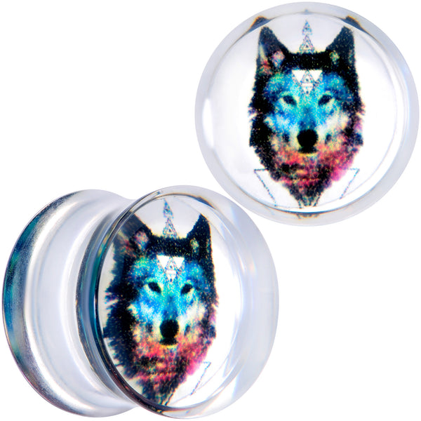 Awwwooooo! Let your stretched lobes get wild with these wolf ear plugs! These ear gauges made with acrylic for a lightweight, comfortable fit and feature a saddle design that makes insertion a breeze. Inside each clear plug is an image of wolf's face in blue and brown for a look so lush you can't help but notice. These wonderfully wild saddle plugs will be sure to make you the leader of your piercing pack! Sold as a set of two.