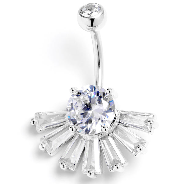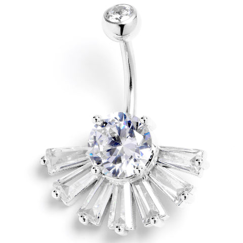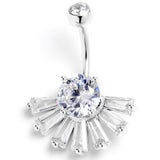 Clear CZ Gem Deco Elegance Fan Belly Ring