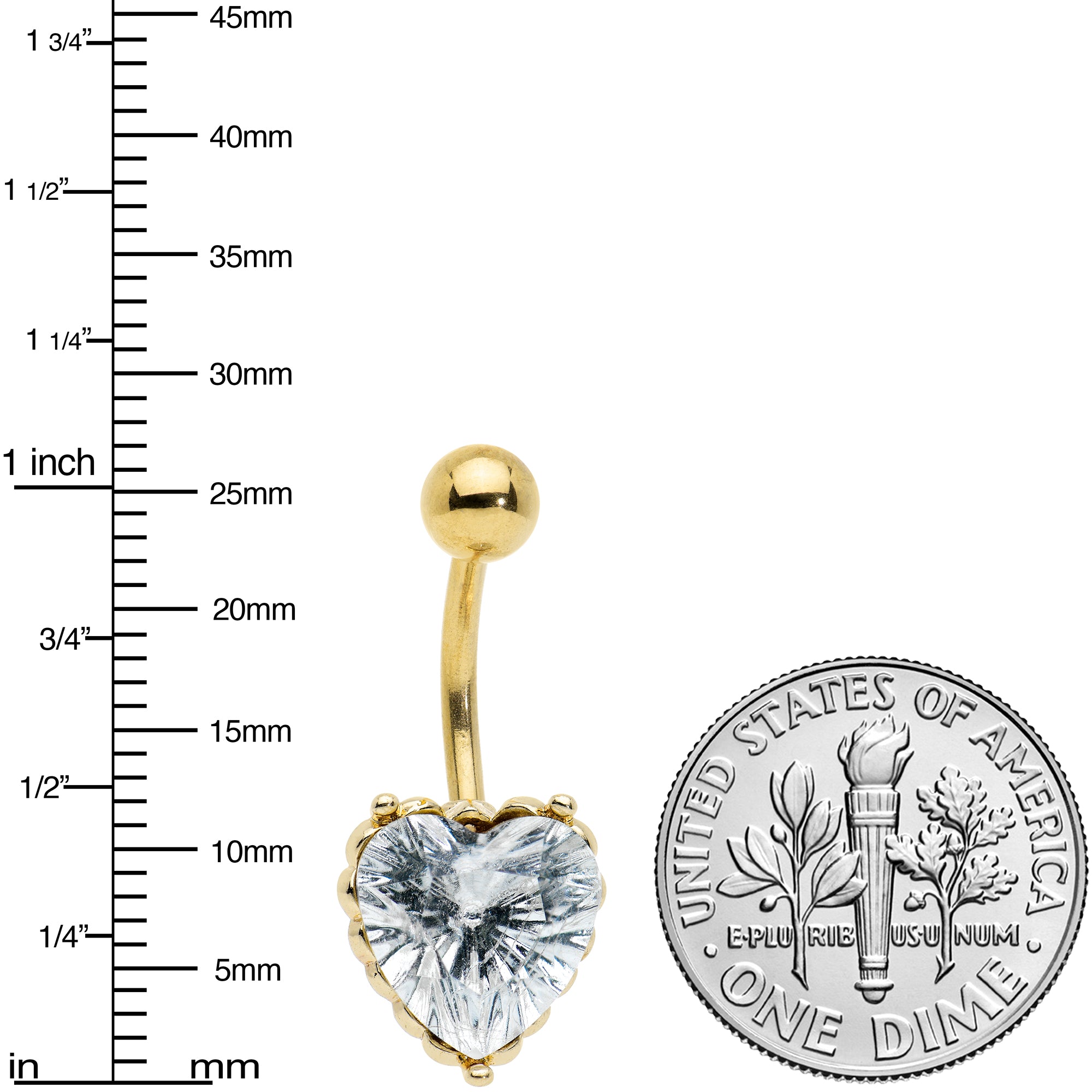 Clear CZ Gem Gold Tone Great Big Heart Valentines Day Belly Ring