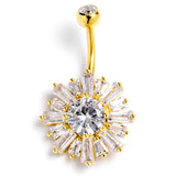 Clear CZ Gem Gold Tone Sunny Burst Belly Ring