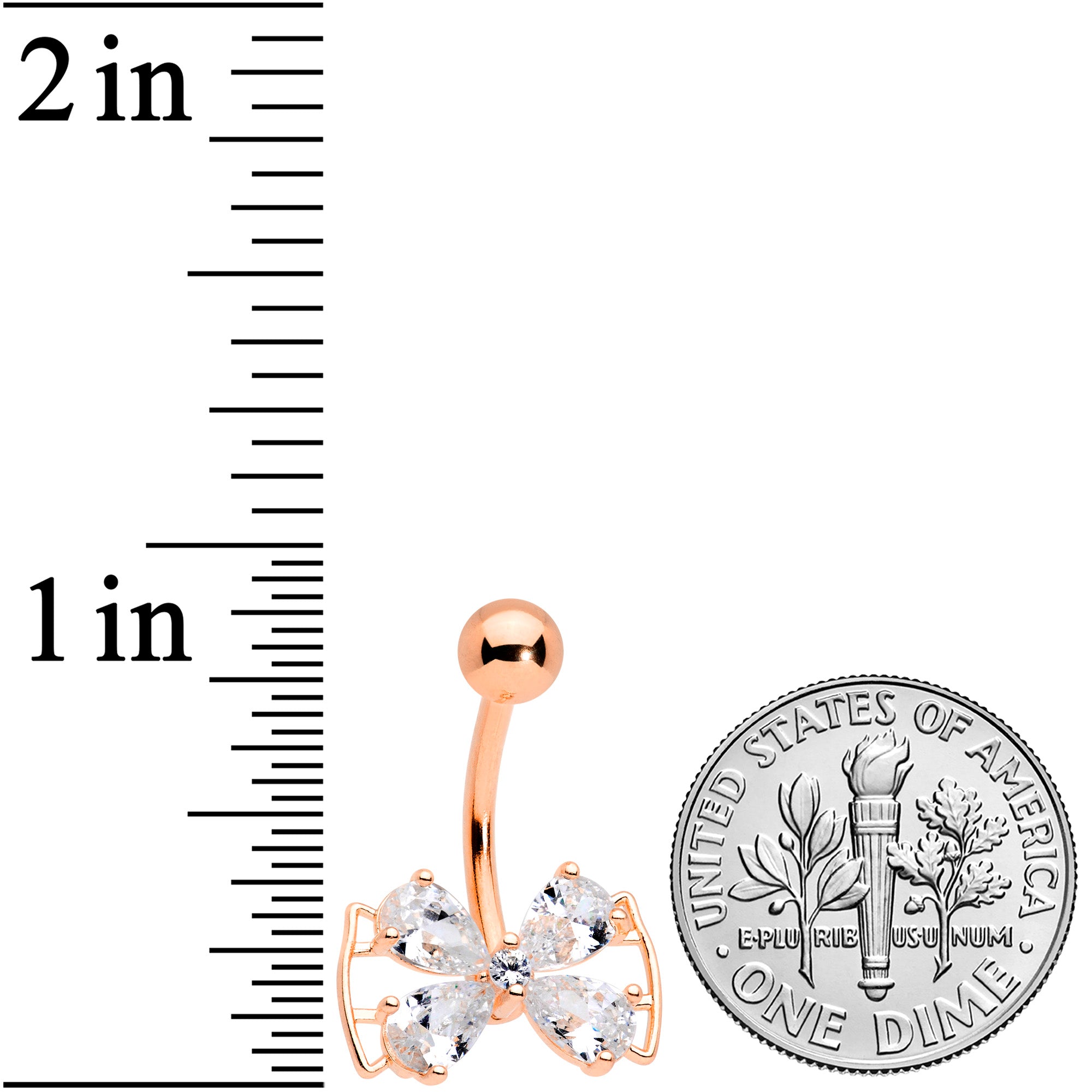 Clear CZ Gem Rose Gold Tone Beauty Bow Belly Ring