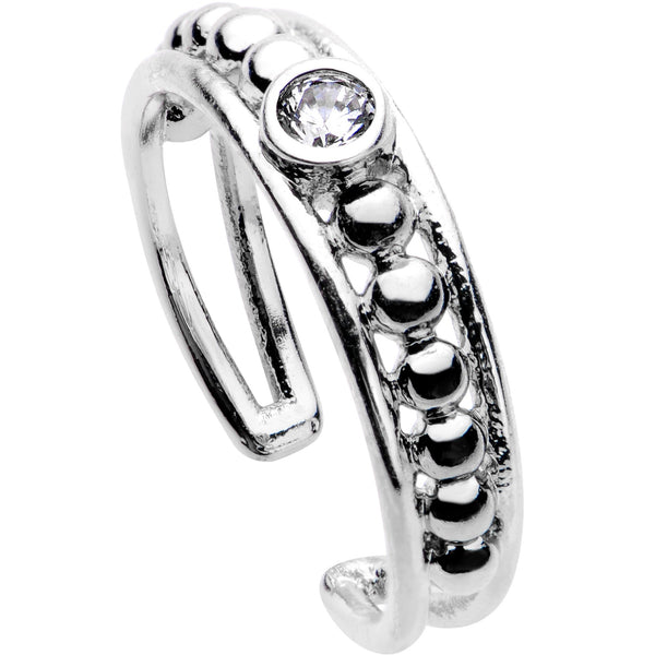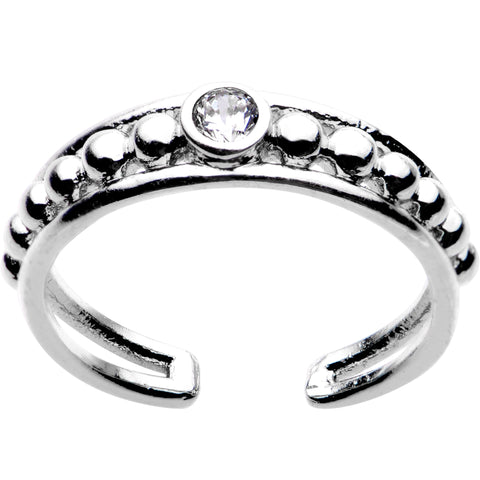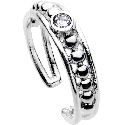 You've got the perfect pedicure, now upgrade your toe jewelry with this beautiful toe ring! This toe ring features a series of repeating metalwork balls leading up to a beautiful clear cubic zirconia design along the band. This brass cast, silver plated toe ring is adjustable, so one size will fit most. Toes need love too, and this is your chance to grab a beautiful toe ring right now!