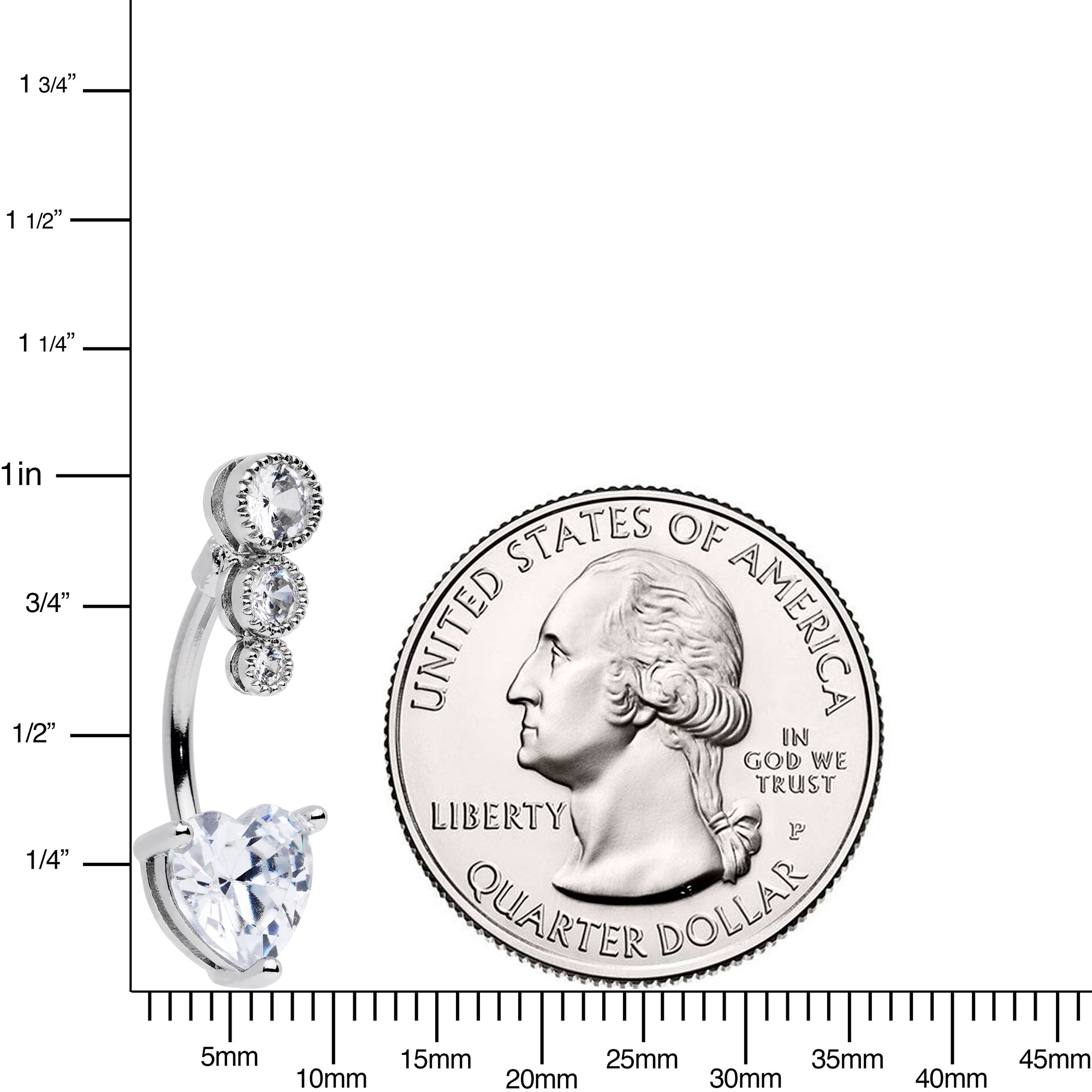 Clear CZ Gem Triple Drop Heart Belly Ring
