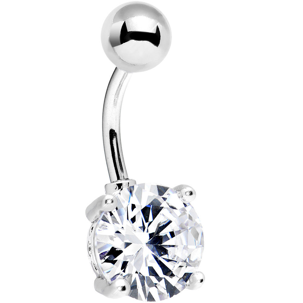 Make an impeccable impression with this dazzling cubic zirconia navel ring. A surgical steel belly ring fashioned with the perfect solitaire CZ with a prong setting on both the top and bottom.